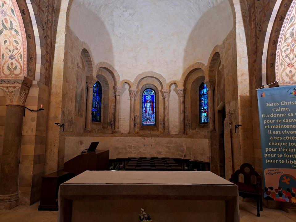 Nous allons à Iguérande, de l'autre côté de la vallée, d'où l'on a une vue magnifique sur Notre-Dame de la Paix et la vallée. La même vue, sublimée par nos Jaguar XJ !!! La très belle église Saint-Marcel d'Iguèrande, qui date du XIe siècle La vue sur la vallée de l'autre côté, avec la Loire, est tout simplement splendide. Allez on entre Le transept Nord Le transept Sud Les beaux chapiteaux Puisque nous sommes sur un forum automobile, je vais terminer avec quelques photos de nos Jaguar XJ... Lodein