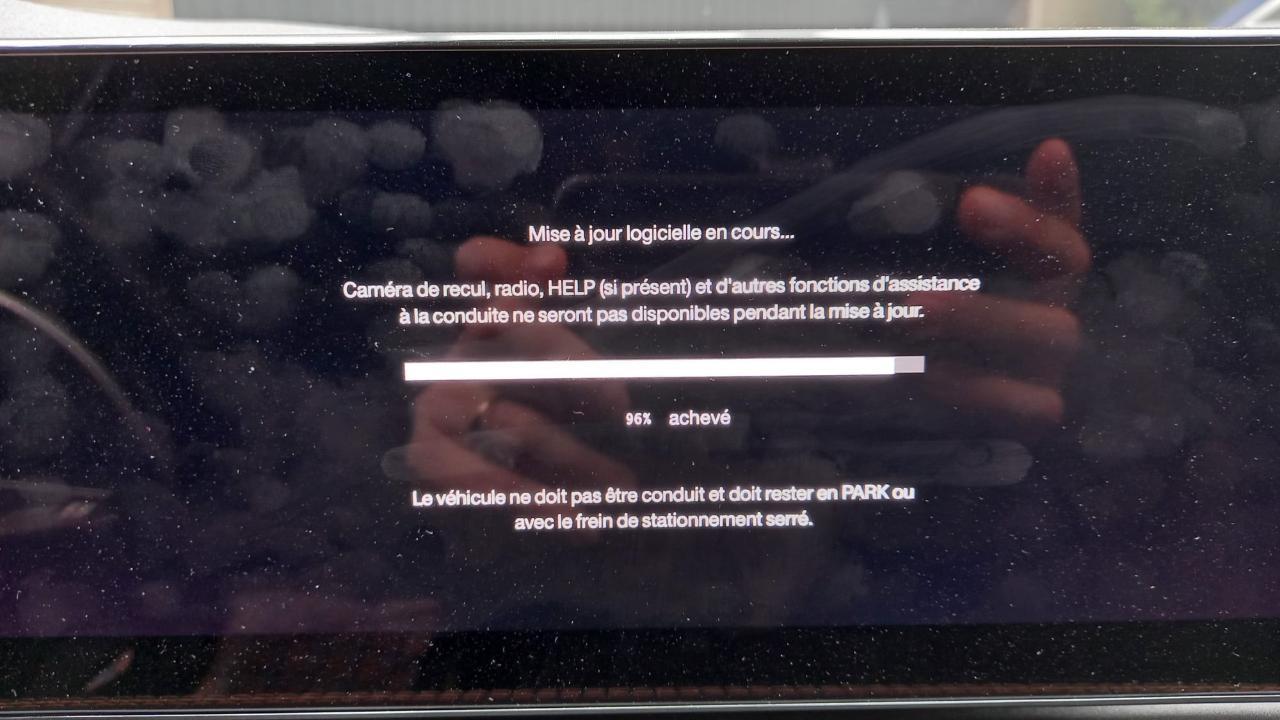 Il y a bien des MàJ via 5G ET/OU Wifi (il faut configurer son choix dans le menu "réglage". Si choix du Wifi, il faut lui donner le code d'accès de son routeur après avoir sélectionné le Wifi de son domicile - la distance entre le routeur et la voiture doit être assez courte). C'est évidemment plus stable par Wifi, selon la couverture réseau de l'endroit où se trouve la voiture. Ces MàJ sont restreintes aux fonctionnalités secondaires souvent liées au système Connect (cartes, radars et caméras de recul...), mais pas le body computer principal, qui doit être MàJ en concession (généralement lors de l'entretien ou campagne de rappel). Voici une photo de mon écran en octobre dernier. La MàJ s'était déclenchée seule sans mon consentement alors que j'étais garé sur le parking d'une grande surface. J'ai dû attendre quelques minutes qu'elle se termine (téléchargement + installation). Le problème de ce genre de fonctionnalité (que l'on ne peut pas couper), c'est que ça pompe sur la batterie en permanence. C'est reconnu que la batterie 12V du Tonale est rapidement HS, et Alfa n'a actuellement pas de solution. La mienne a tenu 1 ans et 5 mois. Depuis octobre dernier, je dois mettre la voiture avec un petit chargeur qui entretient la charge lorsque je ne roule pas tous les jours. La batterie a été vérifiée, elle est encore bonne à 95% mais elle se décharge très vite. Si je roule tous les jours ou si je branche la batterie 12V avec un chargeur intelligent, cela fonctionne. Les symptômes d'une batterie 12V faiblarde sont l'allumage de témoins de problèmes (chez moi de frein de parking), alors qu'il n'y a aucun problème. Généralement, cela disparaît après quelques km.