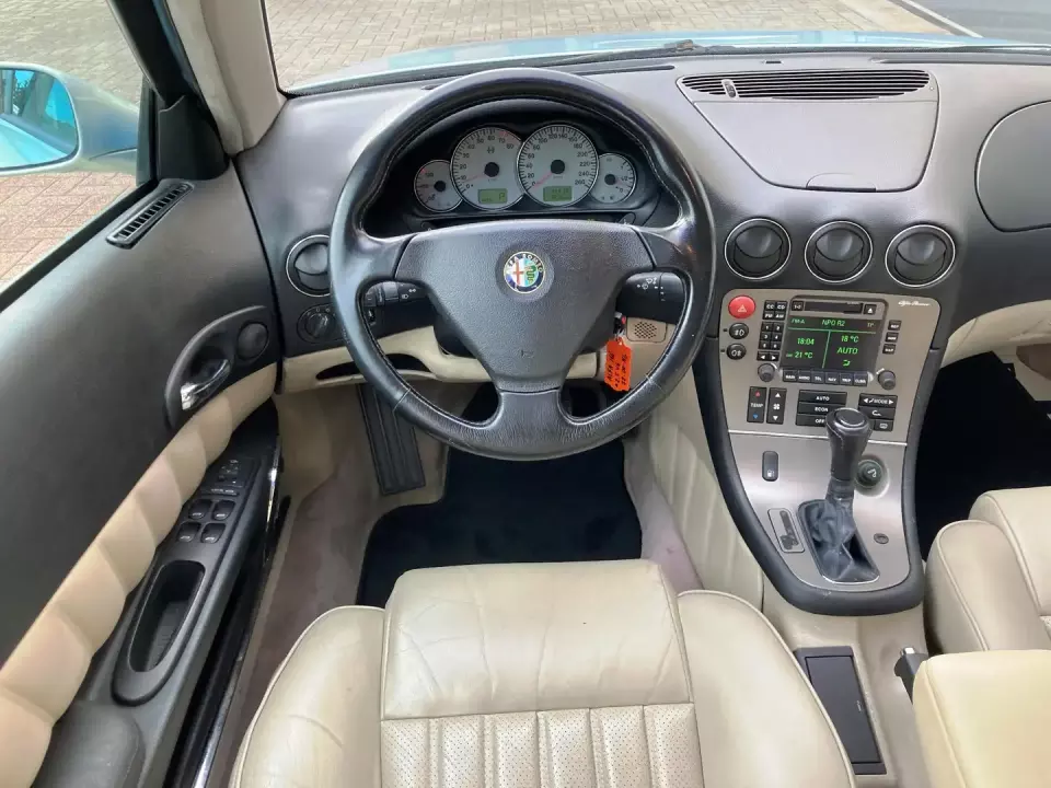 Bonjour à tous, Je suis heureux de rejoindre le forum à l'occasion de mon acquisition toute récente (1 mois) de ma première Alfa Romeo. Une magnifique 166 2.5 v6 190ch Sportronic dans sa teinte iconique Azzuro Nuvola que je suis allé chercher aux Pays-Bas. C'est une Phase 1 datant de juin 1999, en finition Progression (ou équivalent), avec intérieur cuir beige. Elle totalise 195 000 km au compteur. A priori, j'en suis le 3e ou 4e propriétaire. Je l'ai achetée auprès d'un pro, agent Alfa au Sud des Pays-Bas. Très bien entretenue mécaniquement, j'ai l'historique complet des 20 dernières années et j'ai pu négocier une révision complète (moteur, boite, freins) et un nouveau CT néerlandais (plus rigoureux et sévère qu'en France) pour la vente. Il y a un peu de boulot niveau esthétique, avec un bon nettoyage intérieur et extérieur, et pas mal de petites réparations (verrouillage centralisé), rénovations (plastiques intérieurs collants) et petites pièces à remplacer (répétiteurs de clignotants, joint de coffre, logo de malle de coffre, etc). Bref, un nouveau projet auto parfait pour occuper mon temps libre, maintenant que ma précédente youngtimer, une Citroën C6 2.7 v6 hdi, a été totalement fiabilisée et restaurée proche du neuf 😉