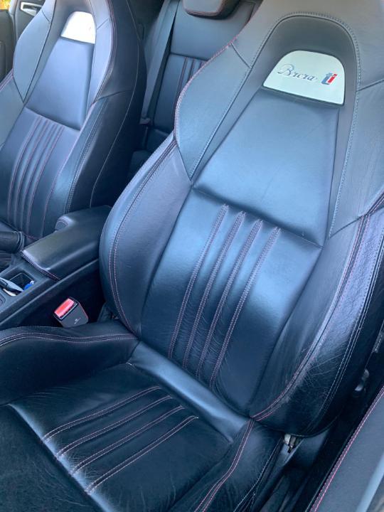 Sièges baquets en cuir, couture rouge, excellent. L'Intérieur, c'est bien une ALFA 🤩🤩