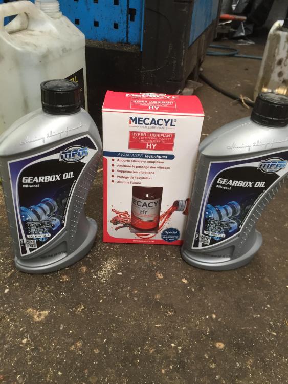 Je vais vous présenter comment faire une vidange de boite sur une 146. Je trouvais que le passage des vitesses n 'était pas fluide, donc achat de l huile et du mecacyl HY pour fluidifier et protéger la boite. La capacité de la boite est de 2 litres, le coût en matériel revient à 38 E, et demande 20 mn. 1 Mettre la voiture sur le pont ou sur crics 2 La boite se trouve à droite du moteur, vous apercevez le bouchon de remplissage sur la quatrième photo, et sur la cinquième le bouchon de vidange. 3 Dévisser celui du remplissage, et desserrer le bouchon de vidange et laisser couler l 'huile. 4 Rincer avec un petit peu d'huile de boite afin qu'elle pousse le surplus resté au fond. 5 Revisser le bouchon de vidange. 5 Ouvrir les bidons, sortir la tige de remplissage, et remplir, le Mecacyl se met entre les 2 bidons. Pour être au niveau un petit filet d'huile vous indique que c 'est plein, revisser le bouchon de remplissage. 6 Essai sur route et c est fini.