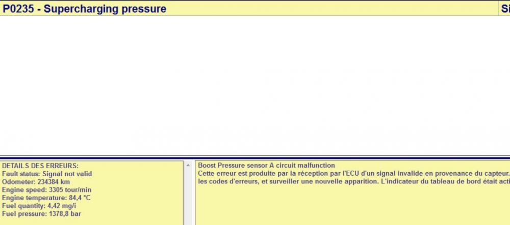 J'ai vu ça en cause possible : "Poor electrical connection at Turbo boost sensor" Et ça m'interpelle car j'ai eu un souci au niveau de la connectique du capteur de suralimentation y a peu de temps (l'auto se mettait en dégradé a cause de l'absence de signal du capteur). J'ai un peu rapprocher les broches de la connectique et plus eu le souci depuis. Ca a peut-être suffit pour rétablir une connexion mais qui n'est peut-être pas optimale... -