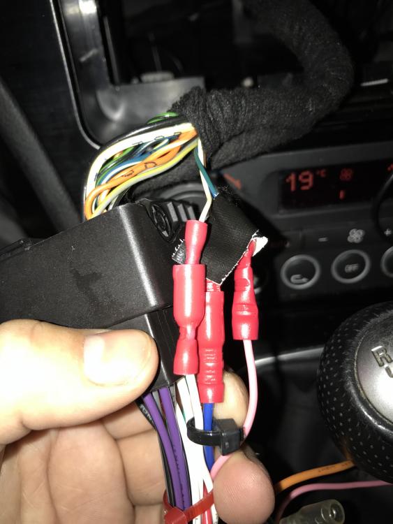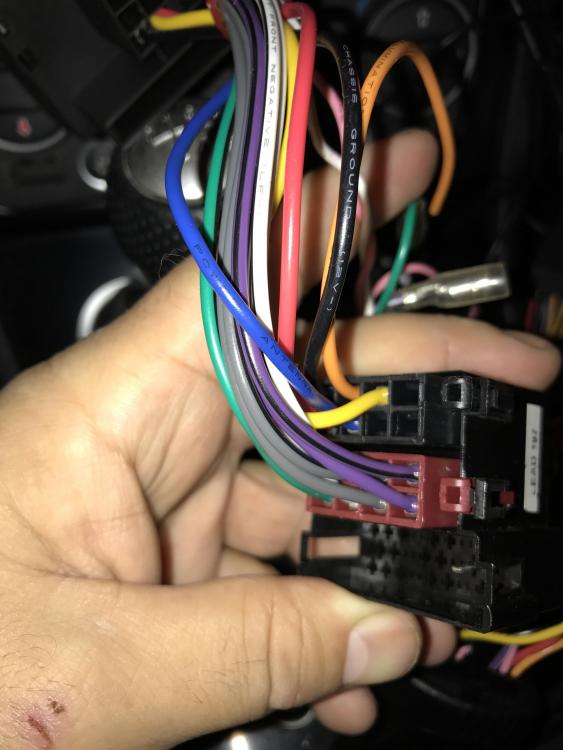 Voilà les photos . Tu as le quad lock et comme tu peux voire 3 câble on été couper ( pas par moi :-)) quand le fils brun n est pas n'est pas connecter pas de son . Le rose et le blanc quand ils sont déconnectés tout marche bien aussi . Comme j'ai dit au dessus le câble rouge et jaune . Un est pour le courant continue et l'autre pour allumer le poste au moment du contacte . Maintenant tu parle d'inverser le rouge et le jaune ? La je suis au stade où tout fonctionne correctement sauf le sub . Ça dois être qu'un câble qui n'est pas connecter ou pas bien . On y est presque j'y crois :-)