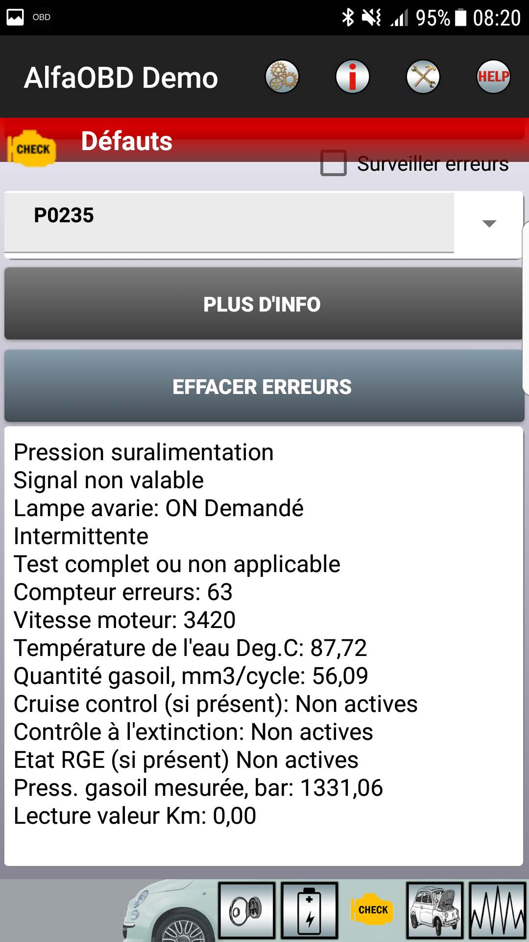Le capteur de pression à été changer, et j'ai toujours ce problème. J'ai étendu un peu les recherche et fait des relever en reproduisant la coupure, ça n'a rien donner sur la pression de gasoil mais pour le turbo par contre il y a une différence importante en la pression désirer et la pression réel juste avant la coupure. Et du coup si mes recherches sont bonnes on approcherait de la limite du turbo, et le moteur injecterait une qtt de gasoil en conséquence de cette pression, mais comme elle est trop élevé le défaut P0191 apparait. Quand pensez vous ?