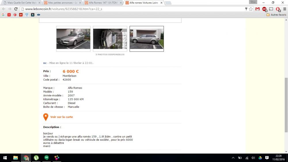 Si tu ne sais pas quoi faire de ta 159, sache que je te ferais le plaisir de ten débarrassé