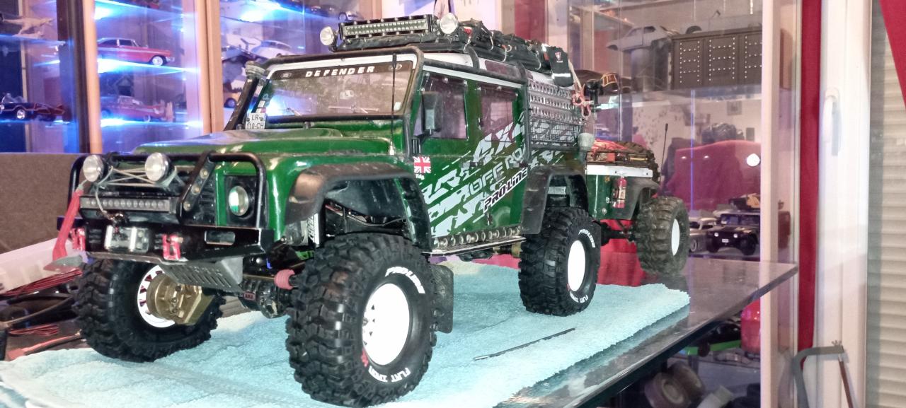 Salut pas de souci pour le réseau du coup on parlera ici car moi les forums j'y vais pas c'est des soi-disant connaisseurs mais beaucoup de merde raconter après si j'ai un conseil à te donner en priorité change le moteur pour du hobbywing fusion 23000 kV pro c'est le must des moteurs tu auras une précision redoutable à la gâchette et un couple monstrueux car l'électronique traxxas est vraiment pas le top fait très attention si tu vas dans l'eau car l'électronique traxxas prend feu ils disent étanche mais c'est totalement faux étanche au goutte d'eau et encore 🤣 pour les microserveaux si tu as le classique donc avec blocage de pont avant arrière et boîte de vitesse tu peux garder ceux d'origine il faut juste resserrer les vis au cul pour qu'il soit bien étanche deuxième conseil alourdi ton châssis car le défaut du défender et que la carrosserie est haute donc d'origine il n'aime vraiment pas les dévers et il a tendance à lever de l'avant avec le mien j'arrive à monter du 90 degrés et à le descendre aussi bien tiens je te laisse quelques photos du mien je ne vais pas te faire la liste de mes pièces mais en full option il m'est revenu entre 1500 et 1800 € comprenant le crawler dedans après tu as bien fait de partir sur traxxas et le TRX 4 c'est le must des châssis et tu plaitord option mais fais attention car il y a des trucs qui ne sert strictement à rien ne m'est jamais de poids dans tes roues les plomb de voiture cela va te bouffer les différentiel celui qui te dit de le faire et un amateur si tu as besoin de site pour trouver des pièces demande-moi j'ai tellement retourné Internet que je suis devenu une banque de données pour tout le monde 🤣 au passage sympa la photo du 1/1 avec sont mini moi je peut pas c'est un patrol gr y60 que j'ai J'ai aussi le slash en 4wd qui prend 100kmh le défouloir 🤣 Et un jeep scx10 2 en crawler scale Et ma fille a le def Trx-4m bleu que tu vois sur la photos comme papa -