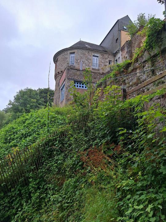 et nous permet d'accéder au jardin de la Pinterie et aux remparts urbains de Fougéres de là nous avons une très belle vue sur le château et sur la ville Nous continuons au pied des remparts dans le jardin du Val Nançon Une belle maison dans une ancienne tour A suivre... Lodein -