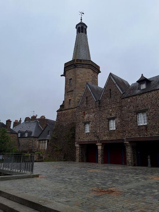 Nous retournons dans le centre par ce joli escalier pour arriver à l’hôtel de la Belinaye qui date de 1742 avec une statue du Marquis de la Rouërie (héros de la guerre d'indépendance américaine) qui naquit dans cet hôtel particulier en 1751 On passe devant le théâtre Victor Hugo qui date de 1886 pour finir notre visite au beffroi Ce beffroi a été construit au XIVème siècle par les bourgeois de la ville comme symbole du pouvoir économique. Il mesure 27 mètres A suivre... Lodein -