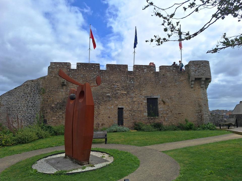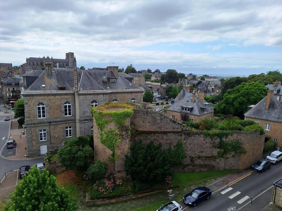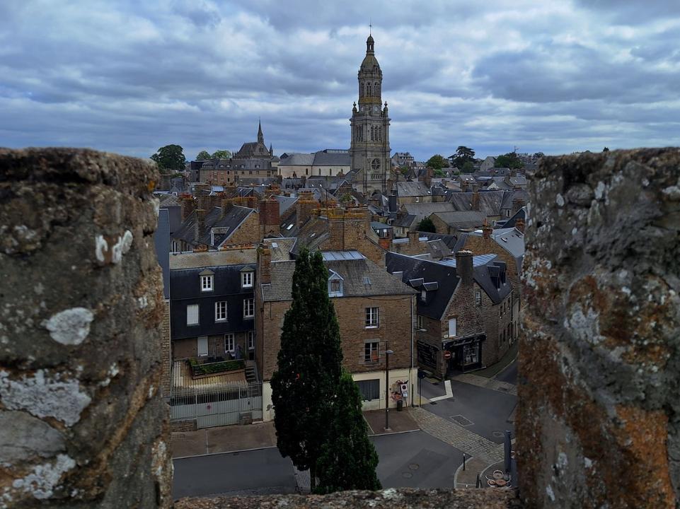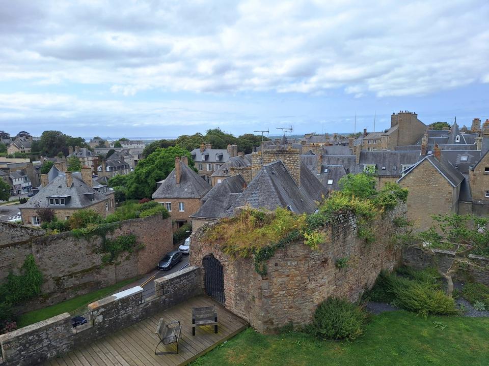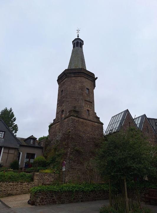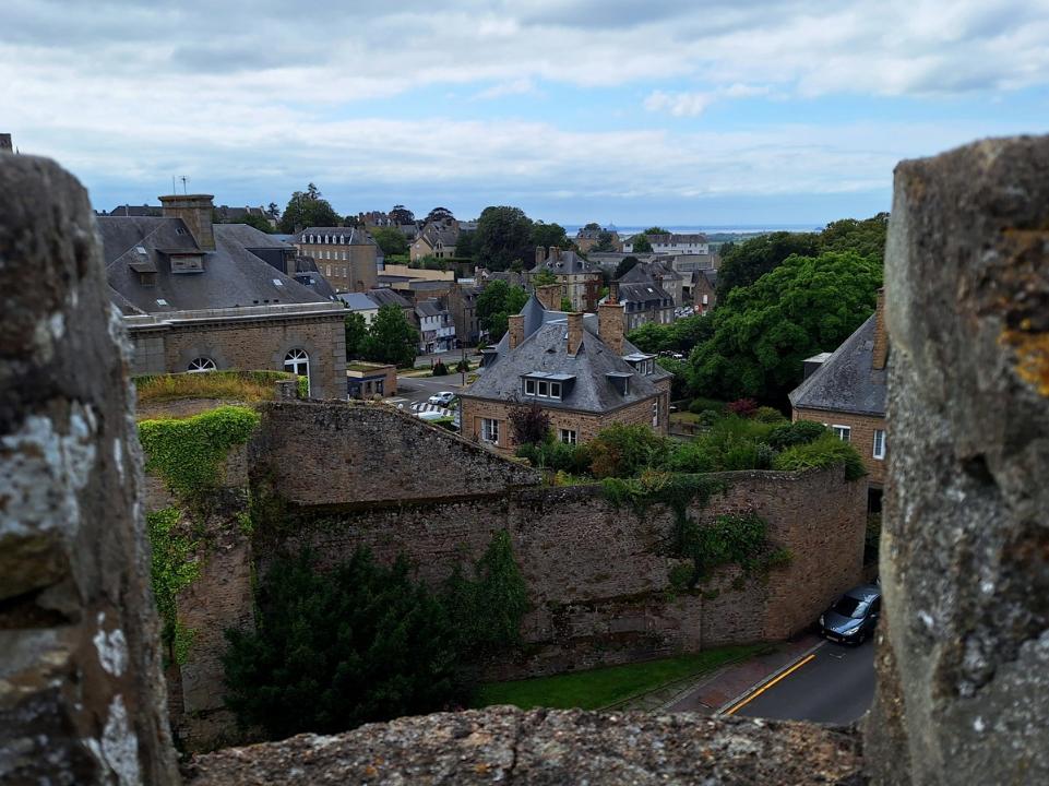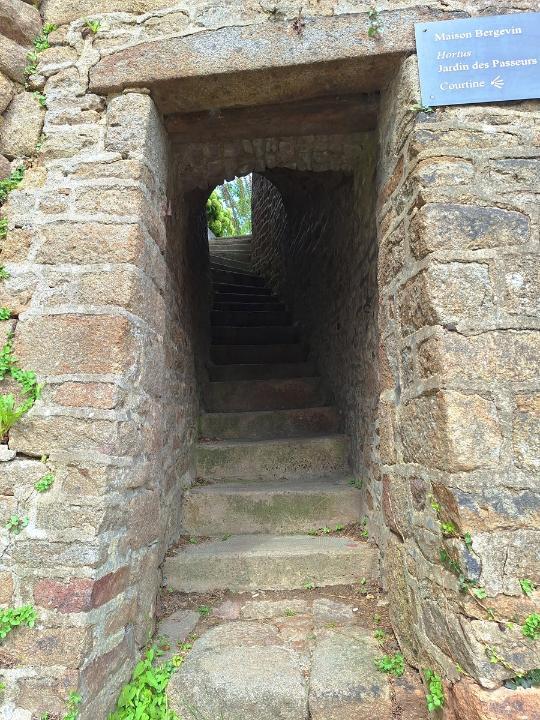 Nous repartons par la rue de Lille où se trouve cette ravissante maison aux fenêtres à vitraux pour arriver au coin de la rue Engibault et cette très belle maison Nous prenons cette petite rue mal famée autrefois pour arriver Rue Maurice Chevel et cette très belle maison Nous reprenons une autre ruelle pour arriver au pied du jardin Bergevin Ce jardin surplombe les murailles de la vieille ville où se trouve les vestiges du Donjon de l'ancien château d'Avranches qui date du Xème siècle en grimpant sur le donjon nous avons de très belles vues sur Avranches La basilique Saint Gervais et Saint Protais L'église Notre Dame des Champs à droite et l'église Saint Saturnin à gauche Les 3 ensembles Vue sur la tour de l'arsenal qui date du XIIIème siècle Vue sur la baie du Mont Saint Michel On redescend par ce petit escalier ce qui nous permet de bien voir le Donjon A suivre... Lodein -