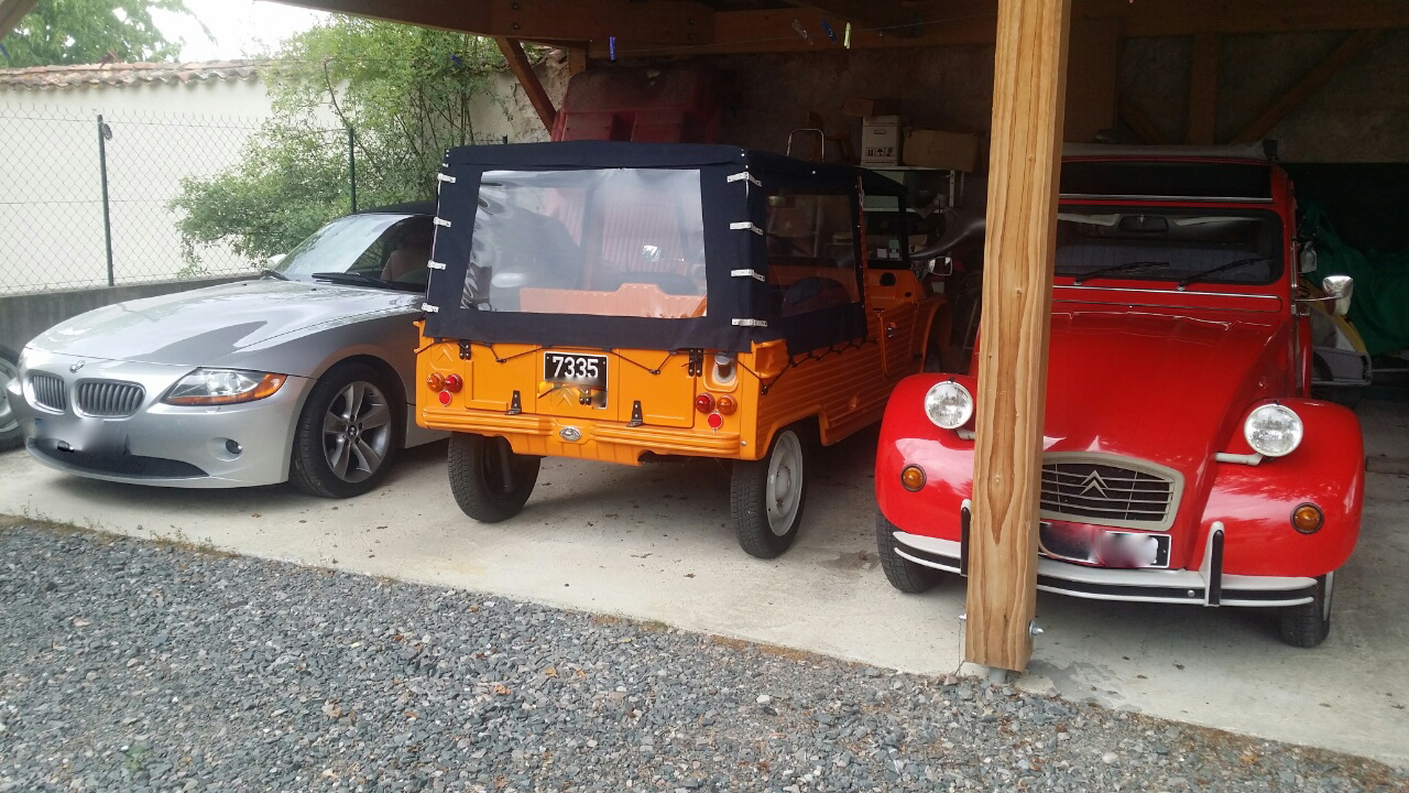 Elle vient rejoindre ma Z4 3.0 ainsi que mes Citroën: 2cv6 de 1990 (42000 km origine), Méhari de 1972 (restauration totale), DS23ie Pallas boite hydraulique (dans son jus!), ainsi que mes 2 roues (BMW 1100RT, 125 DTR, Solex 3800s de 1968, Solex 330 de 1954 et Mobyx de 1971).