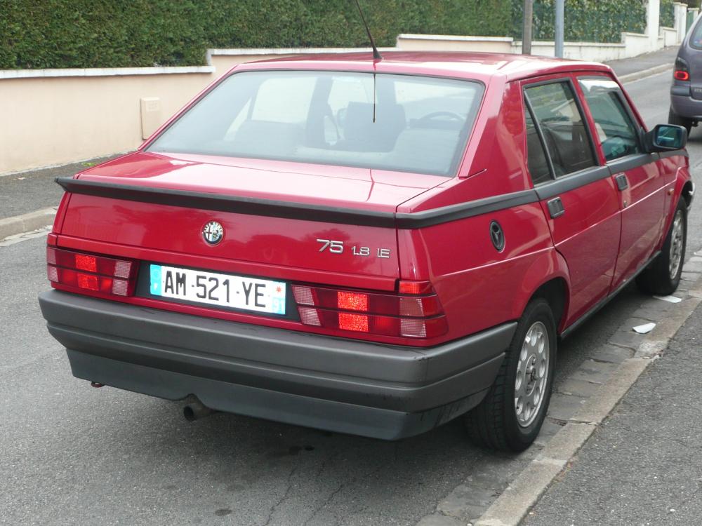 Pour feter le retour de la musique, je reprend le fil du showroom avec une autre ex, Alfa de surcroit! Poster des photos d'Alfa dans les showroom, c'est un peu comme diffuser du porno a une heure de grande ecoute: l'assurance d'un grand succes populaire :-) Ce soir je vous propose des hanches genereuses et une grosse paire de nibards, le genre de nana bagnole un poil vulgaire mais terriblement bandante, chaud devant! Fin 2005, je vends le GTV6 acquis 3 ans auparavant. Cette caisse m'a degoute par ses multiples caprices, sa propension a la rouille et sa finition deplorable. Mais elle m'a aussi transmis le virus, les hurlements orgasmiques du 2L5 sont a jamais graves dans ma memoire. Alors pour la remplacer il me fallait la meme en mieux fini, qui ne rouille pas mais reste une "vraie" alfa (en propulsion!). L'alfa 75 est une auto qui ne laisse en general personne indifferent: on aime ou on deteste et je faisais par chance partie de la premiere categorie. Elle oppose souvent ceux qui la trouve moche et grossiere a ceux qui preferent dire qu'elle est virile et crapuleuse. Ceux qui maudissent son chassis depasse a ceux qui pretendent qu'il faut juste savoir s'en servir. Ceux qui jugent son style interieur navrant a... ben personne en fait, tout le monde trouve ca hideux :) Bien moins sensible a la rouille qu'un GTV, mieux finie, plus efficace (autobloquant, commande de boite isostatique) et mieux motorisee, elle correspondait en tout points a mes criteres. Je parvenais meme a me dire que les 4 portes devenaient un avantage puisque j'etais devenu papa entre temps! Alors quand ma route a croise ce bel exemplaire de 1989 en 3.0 V6 et avec un kilometrage raisonnable (seulement 107000), je n'ai pas hesite longtemps avant de signer le cheque! Quelques photos avant d'enparler un peu plus! (je ne masque pas les plaques, elle a ete vendue a l'etranger il y des 4 ans deja...) Une bien belle boite a chaussure non? Moi j'aime son kit carrosserie a la Goldorak et ses pare choc a soufflet :) America... tout un programme Mon profil prefere: cette croupe integrant le bequet dans le prolongement de la ceinture de caisse donne toute sa personnalite a l'auto L'orchestre est sous le capot, comme d'habitude. Ca avait de la gueule quand meme! Circulez y'a rien a voir. 2-3 trucs rigolos comme la poignee de frein a main "aviation", mais ca ne sauve pas le reste helas... -
