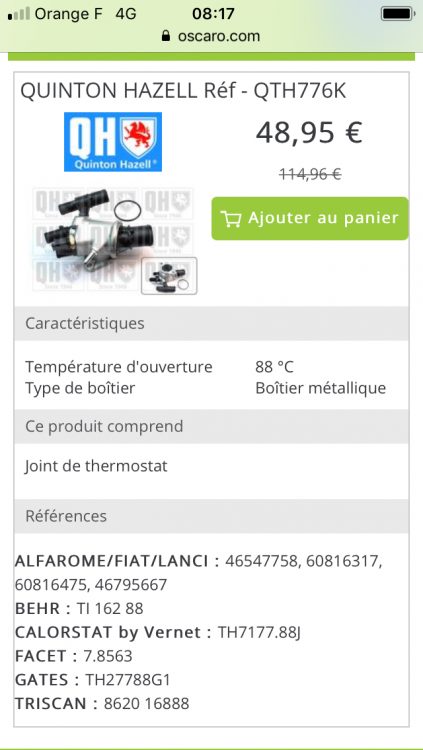 Salut, une nouvelle question: Certains le savent, ma voiture ne chauffe pas (aiguille ne dépasse pas les 50 degrés, et le chauffage de chauffe pas des masses...) Alors je me suis imaginé que c’etait la faute du régulateur de température qui reste toujours ouvert... Mais on collègue qui a eu des alfas m’a dit que les siennes n’on jamais chauffées au dessus, sauf en été, elles montaient a 80 degrés. Du coup qu’en est il pour vous? Est-ce normal? J’ai pas envie de changer des pièces pour rien