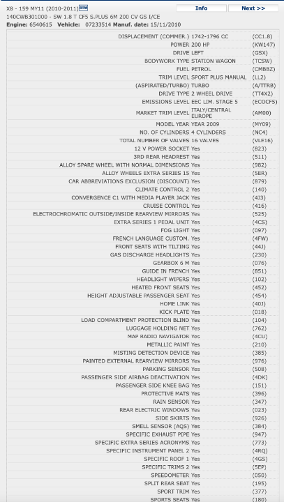 Avec le VIN, tu peux avoir la liste des options usine dans ePer. Dans trim level, la finition Ti correspond à "Sport Plus" manual ou auto. Voir ici par exemple : https://www.pekidi.com/navi L'absence de badges était une option gratuite, sinon ils ont été retirés après.