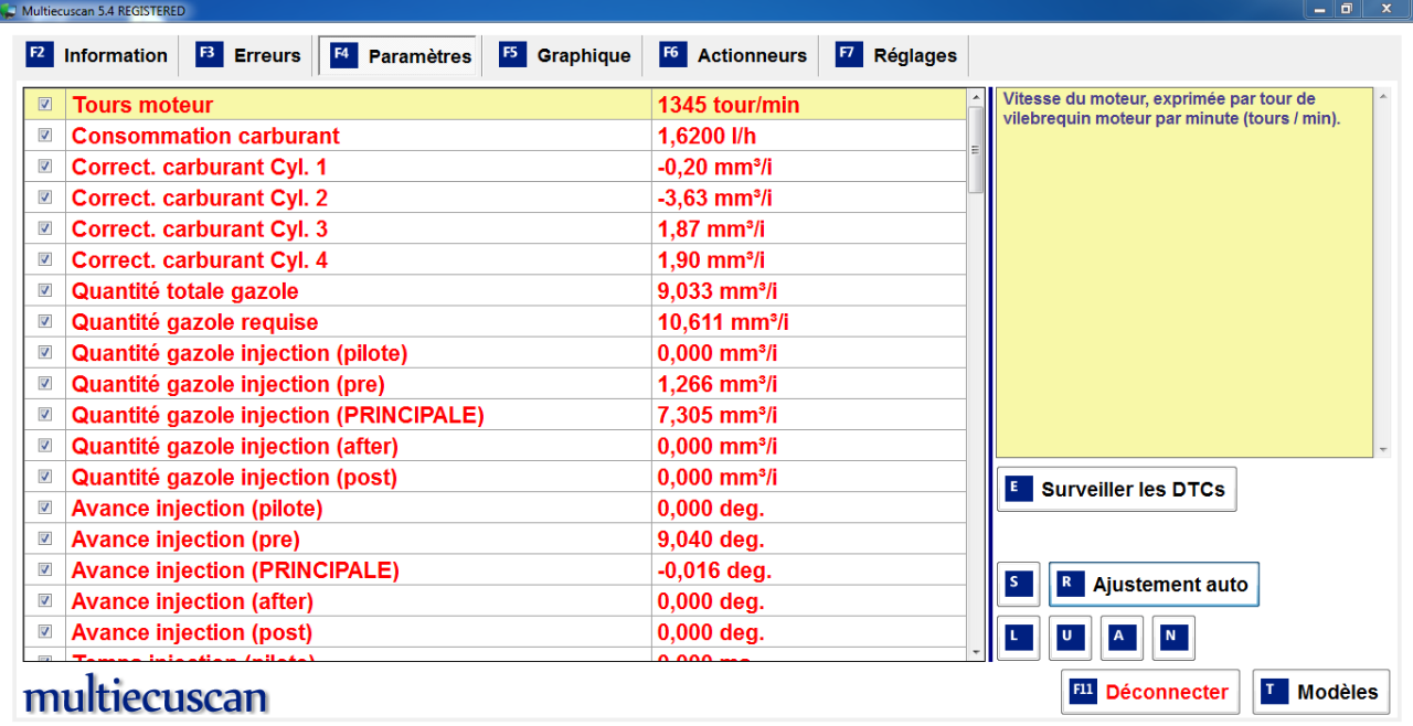 Alors j'ai pris des relevés d'informations avec MES (Multiecusscan) et j'aimerais savoir si mes injecteurs reconditionné sont quand même bon.
