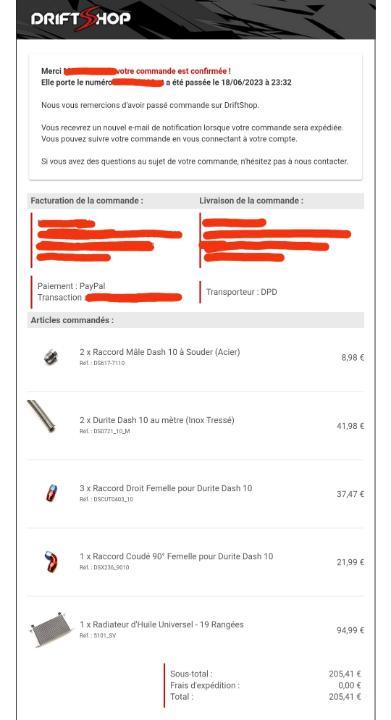Bonjour, bonsoir à tous En faisant mon embrayage récemment, mon radiateur d'huile c'est mis à fuire... Sûrement du à un coup de manche de cric mais passons J'ai cherché un petit moment un radiateur d'origine sur internet : le néant ou alors à des prix exorbitant 😐 Et chez alfa il faut compter un petit billet Donc je me suis rendu à adapter un radiateur universel 😀 Connaissant le point faible des radiateurs d'huile d'origine, ça va grandement améliorer la fiabilité L'état avant : Ça gouttais pas mal, ça ce voit pas forcément Pour le matériel : Driftshop : 205 euros - 1 radiateur d'huile en matrice 250mm et 19 rangées (raccords dash 10) - 2 mètres de durite tressée inox Dash 10 - 3 raccords femelle droit Dash 10 - 1 raccord femelle 90° Dash 10 - 2 raccords à souder en acier mâle Dash 10 Quincaillerie : 35 euros - 1 mètre de cornière en aluminium 30x30mm : 15 euros - 2 silentbloc M8 : 10 euros - visserie diverses : 10 euros Soudure : 50 euros - Soudure des deux raccords mâle Dash 10 sur tuyaux d'huile d'origine Total : 290 euros Extrait de la facture de chez Driftshop : Dans un premier temps, on démonte l'ancien radiateur et on le vidange du restant d'huile. Puis, on démonte les deux tuyaux d'arrivée d'huile. Il y a deux raccords sous la voiture avec deux écrous de 10. Attention ça va pisser l'huile ! J'ai coupé les tuyaux d'origine au trait rouge et il sont partie en soudure. Une fois récupéré J'en ai profité pour les brosser et les repeindre. J'ai aussi changé les deux joints toriques au bout des tuyaux souple. Pour le radiateur, j'ai posé deux équerres en haut avec les deux silentbloc. J'ai par la suite boulonné le radiateur sur la traverse avant supérieur Puis j'ai fabriqué le support du bas en cornière d'aluminium en me reprenant sur la grosse poutre à l'avant. Puis j'ai tout boulonné Manque maintenant les raccords en huile, l'assemblage est assez dur mais une fois assemblée c'est du solide ! Puis pose sur la voiture, ça commence à bien rendre Après assemblage, démarrer le moteur et contrôler les fuites. Penser à faire un gros appoint d'huile, le radiateur en as pas mal.. Remontage de tout les éléments de carrosserie et rendu final Si ça peut aider certains à sauter le pas sur cette adaptation 🙂 à plus tard ami Alfiste !