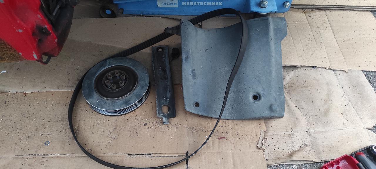 Bonsoir à tous, Je commence le tuto, j'ai pas beaucoup avancé malheureusement.. Pour accéder à la pompe à huile il faudra : - Faire de la place à l'avant droit - Enlever les supports moteur sup et inf droit - Soutenir le moteur par le dessus - Vidanger et retirer le carter d'huile - Piger la distribution et la retirer - Retirer le pignon du vilebrequin (ATTENTION PAS À GAUCHE SERRER POUR DÉVISSER) Dans un premier temps on lève sa 159 puis on la calle bien solidement sur les emplacements prévus Puis on ouvre le capot et on débranche le négatif de la batterie On va faire de la place côté roue avant droit. On vire la roue, le cache plastique devant la damper, le renfort de berceau, la courroie d'accessoire et la damper On obtient ça, j'en ai profité pour faire mes repères sur la distri. Puis on fait de la place dans le compartiment moteur. Tuyau d'admission, résonateur, cache distri.. sa dégage Et le bocal de DA (on ne le déconnecte pas du circuit hydraulique). À mettre sur le côté Maintenant il faut soutenir le moteur avec un cric au niveau du carter d'huile C'est au tour du support moteur ainsi que de la plaque en acier d'être retiré (cette plaque est chiante à dévisser il ne faut pas hésiter à trimballer le moteur de haut en bas pour pouvoir desserer et sortir cette pièce) La place est faite, on obtient ça Il va falloir supporter le moteur par le dessus pour le reste de l'opération. Pour ça j'utilise une traverse spécifique pour ce type d'opération Pour tenir le moteur, on va utiliser une vis de la plaque en acier avec quelques rondelles On installe la traverse, on la règle et on soulève le moteur Ne vous fiez pas à la distribution démonté, j'ai pris la photo bien après. Voilà pour cette première partie, prochaine fois on vire le carter d'huile et la distribution pour accéder au but de ce tuto...... La POMPE À HUILE 🙏 Amicalement Maxime -