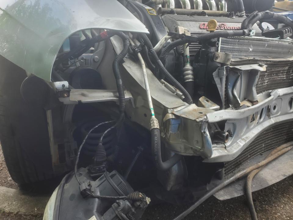 J'ai démonté la barre en métal devant le capot et sur les photos on peut voir la traverse reculée de 30cm au milieu, le radiateur est collé au bloc mais le moteur ne semble pas avoir bougé la déformation de la carosserie s'étend jusqu'à 50cm des cloches d'amortisseurs, j'avais pensé dans le cas où je pouvais la réparer de récupérer une 156 pour pièce et refaire toute la carosserie mais ce qui impliquerait un passage au marbre de la découpe et des soudures avec passage d'un expert donc je souhaitais avoir votre avis sur la possibilité de la réparer étant donné que c'est une voiture que je comptais garder longtemps. En vous remerciant d'avance pour vos interventions.