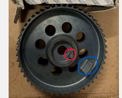 Bonjour, merci pour vos réponses ! Je n'avais pas penser à la poulie de l'AAC.. je savais juste que c'était elle la cible pour le capteur associé. Je viens de regarder sur EPER, il y a l'air d'avoir un espèce d'ergo qui doit jouer le rôle de la clavette sur la poulie, et éviter qu'elle ne se décale. Je vous met des photos de ce que j'ai trouver. Sur la photo, j'imagine que ce qui est entouré en rouge est l'ergo/clavette et en bleu, la cible pour le capteur ? Je vais essayer de la démonter en retombant une nouvelle fois la distribution pour voir si cet ergo n'est pas cassé. Mystery_077 tu indique que la poulie est "réglable" sur quelque degrés, comment je peux m'y prendre pour bien la caler ? Est-ce que je doit la mettre en butée d'un côté ?