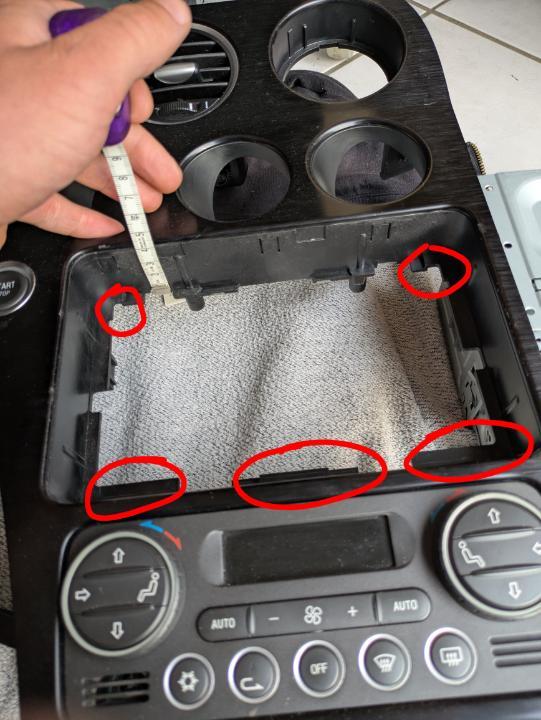 - si comme dans mon cas le nouvel autoradio ne passe pas, il faut limer le contour plastique qui servait de butée à l'autoradio d'origine. Étape délicate, il faut limer de façon assez symétrique pour centrer au mieux le nouvel autoradio, et veiller à ne pas trop enlever de matière pour qu'il ne nage pas dans l'emplacement. Il vaut mieux y aller à la lime qu'à la dremel qui va faire chauffer le plastique. Ne pas hésiter à contrôler plusieurs fois si l'autoradio passe pendant l'opération. De cette manière avec un poste Pionner, on conserve les fixations d'origine à l'intérieur de l'habillage, si on veut remettre le poste d'origine.