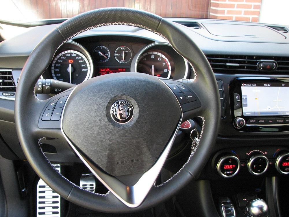 Bonjour à toutes et tous Je viens vous présenter ma nouvelle acquisition que j'ai depuis décembre (je sais, je suis en retard). Je vais vous raconter sa petite histoire. Après être débuté avec une 146 boxer au son envoutant, j'ai continué avec une 156 1.9 JTD 110 cv (au son déprimant......). Puis, à force de croiser le coupé GT, j'ai pris la direction du concessionnaire pour qu'il m'en trouve une selon mes critères (kilomètre, prix etc). Est arrivé un GT 1.9 JTD 150 cv. Mais après seulement 3 ans, je n'avais plus qu'une idée en tête : BRERA Après 6 mois de recherche, j'en ai trouvé un récent avec peu de kilomètre, un Skyview JTD 200 cv intérieur cuir. C'est celui que vous avez peut être déjà vu sur mes posts. Mais voilà, il était temps de passer à autre chose. Le Brera est magnifique, unique même dans sa ligne mais un peu de changement, cela me titillait trop. Reste à trouver vers quoi se tourner : premier réflexe : regarder chez Alfa : point de coupé à l'horizon à part le 4C, oh combien sublime et attirant mais oh combien cher et inutilisable au quotidien (euh, je le mets où le pack d'eau ???) donc, voir la concurrence. Ok, c'est tout ce qu'ils ont ??? Retour chez Alfa, mon frère ayant fait l'acquisition 2 ans plus tôt d'une Giulietta Quadrifoglio Verde et en étant très content (s'il n'avait pas de pare brise, il aurait des moucherons en permanence sur les dents !!!!), j'ai décidé de le copier. Voilà, je fixe mes critères : modèle restylé (pour l'écran tactile), peu de kilomètres, intérieur cuir, toit panoramique, jantes Aéro titane et PAS GRISE!! Je commence mes recherches en mars 2015. J'en vois une chez un concessionnaire pas loin, une TCT 240 cv de 2015 blanche. Sublime ! La gentille vendeuse me file les clefs avec un grand sourire et me dit d'aller lui dégourdir les jantes. Après un bon essai, je ne suis pas convaincu par la boite auto....je lui rends les clefs et repart. Je revois mes critères en ajoutant : boite manuelle. Et là ça se complique : restylée et boite manuelle réduit la période de production de décembre 2013 à décembre 2014.... Bref, très difficile à trouver en France, je regarde à l'étranger. Après 6 mois de recherche, aucun modèle reprenant les critères voulus.... je réduis donc mes prétentions et fini par en trouver une en Allemagne chez un concessionnaire Alfa. C'est une Quadrifoglio Verde 235 Cv de 2014, elle a 1 an, Pas le cuir, Pas le toit panoramique, Pas les jantes aéro titane et GRISE !!!!!!!!! mais elle est dans mes prix et elle n'a que 400 km (véhicule de concession). Elle a le GPS, Xenon, jantes 18 pouces, sièges chauffants, surpiqures vertes et blanches sur volant et sièges, etc. bref, sympa! et tout compte fait, le gris est plutôt pas mal en réalité. je demande à mon gentil garagiste qui importe aussi sur demande de me la ramener. Après inspection pour voir si tout était ok et le temps de faire les formalités et d'obtenir tous les papiers, j'en prends possession en décembre 2015. Depuis, c'est le bonheur. Elle est à la fois souple et démoniaque en dynamic . Traverser les petits villages à 50 km/h et relancer dès le panneau de sortie passé, c'est un régal. Depuis décembre, elle est passé de 400 km à 12 500 km.... Et puis le bruit! Cela ne vaut pas le V6 Alfa, c'est sûr, ni celui de la version 240 cv qui est plus présent, mais il y a un petit son grave lorsque l'on relance et que l'on monte dans les tours....hum. Bon, place aux photos