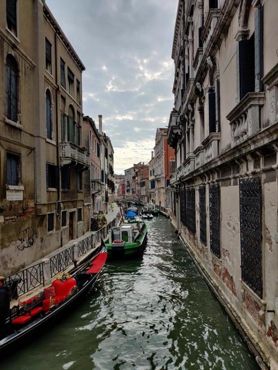 Octobre 2020, en pleine pandémie de Covid 19, nous prenons l'avion direction Venise pour une semaine sur place. Quelques jours avant, nous avons fait des tests PCR pour mon ainée, ma femme et moi, nous avons en poche nos déclarations à destination de l'ARS italienne. A peine sortis de l'avion, que nous sommes déjà dehors à attendre le car qui va nous déposer aux portes de Santa Croce! Heu? J'ai raté un épisode ? Je croyais que c'était la folie, que les frontières étaient sur-surveillées, que tu ne pouvais pas entrer avec un nez qui coule toussa toussa... Personne! Rien ! Nada! On est entrés comme tu irais de ton salon à ta cave, ni plus ni moins. Tant mieux, on ne perd pas de temps! L'arrivée à Venise, c'est pas comme dans certaines capitales où il te faut attendre avant d'arriver à la chose qui caractérise la ville, comme Berlin et sa tour TV, Paris avec sa Tour Eiffel... Venise, t'es dans l'ambiance direct! Et ta première vision, c'est ça Et si t'es pas encore persuadé d'être en Italie, le corbillard Maserati te rappelle qu'ici c'est pas Bruges! Nous voici donc à Santa Croce Ici commence la première journée. L'idée c'est qu'il est 9h30 environ et qu'on s'est fixé midi pour prendre possession de l'appart. Donc d'ici là, on va se diriger gentiment vers St Marco mais en se baladant via le Rialto, ensuite on explorera Castello. Nous entamons la traversée à travers les innombrables canaux et magasins à touristes. Mais les touristes... il n'y en a pas ce matin! Sont ils là? Sont ils au lit? Je ne sais pas encore, mais c'est vide de chez vide! Pause café / petit dej et visite d'une église au plafond en carène Quand on voit Venise vide comme ça, on se rend mieux compte de l'ambiance mystérieuse qui devait y planer, les petites ruelles de pavés, les passages où des intrigants se cachent... Et bien entendu, on peut admirer les palais nombreux de la ville, certains refaits entièrement, d'autres dans leur jus, mais toujours magnifiques Nous arrivons aux portes du Rialto, Campo Giacomo di Rialto, avec son horloge étrange et son colosse qui supporte encore les marches d'un escalier disparu La semaine dernière c'était l'aqua alta, donc on trouve encore un Venise avec un niveau d'eau important et les passages surélevés empilés ça et là Voilà donc le Rialto, pont commercial caractéristique de la cité des doges Nous nous rapprochons doucement de notre appartement à travers les ruelles parfois très étroites... La ville semble déserte. Pour l'avoir visitée en décembre 2005 le décalage de fréquentation est hallucinant! On croirait que la ville est désertée! Les gondoliers espèrent un client et cassent les prix, il n'y a pas ame qui vive. Seconde pause dans une église juste après avoir constaté les débuts du tournage du futur Mission Impossible dans les rues de la ville. On se rapproche de St Marco et les boutiques pullulent... mais toujours désespérément vides Ici, une librairie surfe sur les stigmates d'une aqua alta qui a ravagé la magasin il y a quelques années Nous remontons légèrement vers le nord entrant dans Castello en direction de l'hôpital San Giovanni e Paolo Sur la place trône une statue au blason représentant une paire de c... Ne riez pas, c'est vrai! L'homme était tellement couillu qu'il en a fait son blason! Pause déjeuner après avoir récupéré les clés de l'appartement et nous repartons, guide du Routard en poche, en direction de l'Arsenal, via le Nord de Castello Arrivés sur la cote, on aperçoit en face, le cimetière St Michel Le quartier de l'arsenal parait moins flamboyant que les abords du Rialto, mais personnellement, j'adore! Nous voilà place de l'arsenal, devant l'entrée majestueuse du terrain militaire Nous repartons vers le sud, en direction du musée naval, où la vue sur Giudecca s'offre à nous De là nous poursuivons vers l'est, en empruntant l'avenue Garibaldi, ancien canal asséché et devenu une rue large et plaisante, où il fait bon vivre A la sortie du parc, nous voilà de retour sur la cote Comme nous approchons les 11 km depuis ce matin et que ma fille commence à faiblir, nous prenons le bus... sur l'eau bien sur! Et nous débarquons à 2 pas de la place St Marc Une dernière église, San Zaccaria, pour la route Nous passons non loin du pont des Soupirs Petit cours d'architecture avec ma fille devant ce bateau qui remplace les pilotis qui soutiennent toutes les structures de la ville Il est 16h30, le soleil décline, alors, avant de passer faire les courses, petit détour place St Marc avec ses centaines de pigeons et ses milliers de touristes... Bah??? il n'y a plus les nuées de pigeons et la marée noire de touristes... finalement c'est mieux comme ça !! Mais comme la journée se termine, qu'on a fait 13km, il est temps de passer aux choses sérieuses!