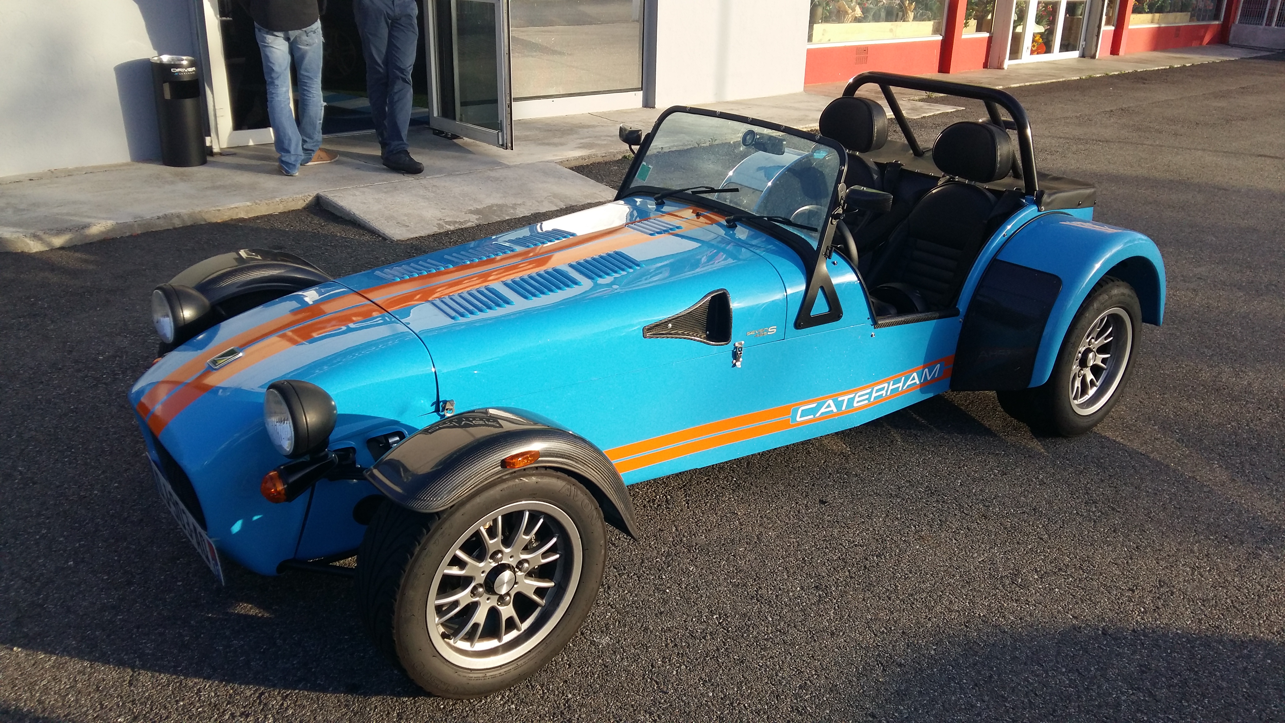 ToxyMaTT Posté(e) le 16 Septembre 2017 Auteur Signaler Posté(e) le 16 Septembre 2017 (modifié) Pour ceux qui n'ont pas mon facebook, voilà l'engin dans lequel j'ai fais un baptême passager avant hier ! Caterham 485S, moins de 500kg, moteur Ford duratec 2L 240ch préparé par Cosworth. J'étais déjà très très fan avant de glisser mes fesses dedans, autant vous dire que la je suis carrément fou amoureux. Je suis ressorti avec une banane jusqu'aux oreilles C'est la version la plus puissante homologuée en France. Tout est décuplé comparé à la mx5, assis plus bas, coincé entre l'échappement et la boîte, autant dire qu'il fait chaud ! On avait les casques, et je peux vous garantir que même avec le pare brise c'est utile ! Tu prends quasi autant d'air dans la gueule qu'en moto ! Ça accélère de fou, heureusement que ça monte pas beaucoup au dessus de 200 car on est tellement vite à des vitesses illégales..., les petarades du pot c'est juste jouissif (me demande comment ils ont homologué ça d'ailleurs), et y'a même un petit coffre (une boîte à gant plutôt) pour les courses C'est clairement pas une remplaçante de la mx5 pour le moment, car j'envisagerais pas un weekend à 2 avec ... Mais plus tard quand j'aurais des gamins et donc que la mx5 ne me servira plus qu'à moi pour décompresser ... Pourquoi pas ! Modifié le 16 Septembre 2017 par ToxyMaTT