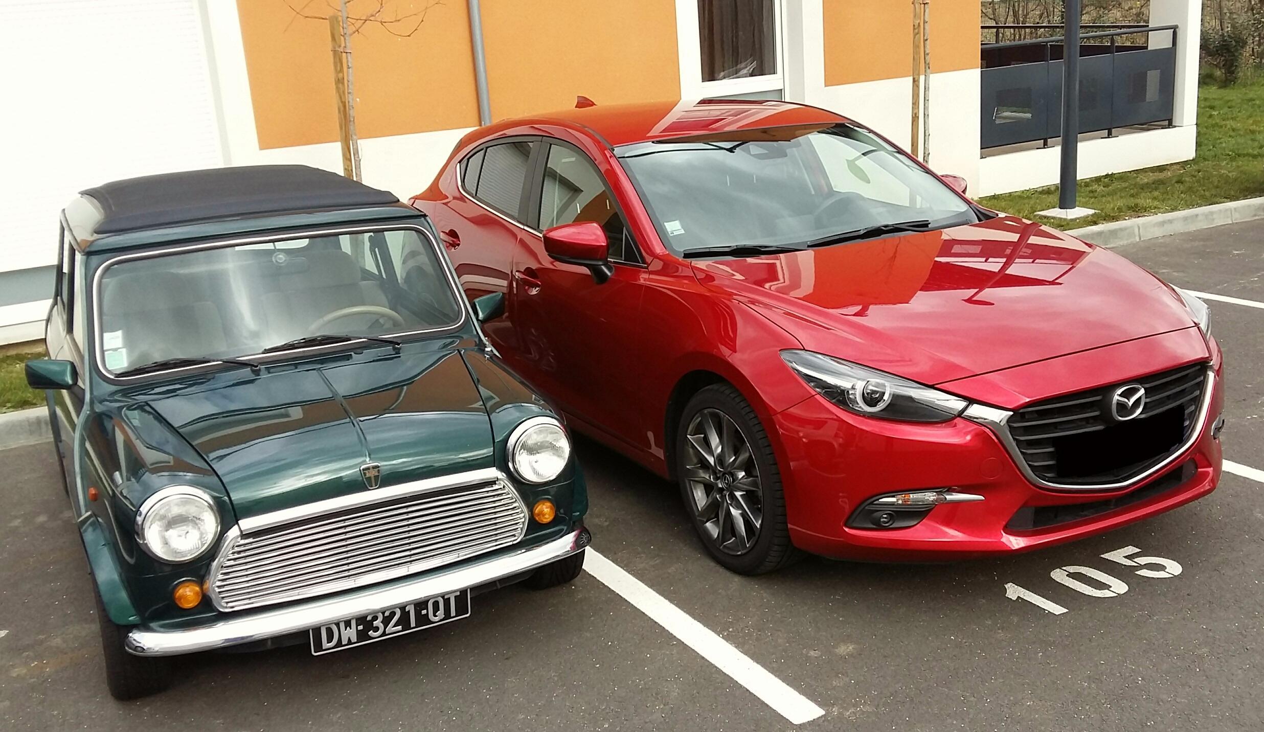 ToxyMaTT Posté(e) le 4 Février 2019 Auteur Signaler Posté(e) le 4 Février 2019 (modifié) Voila la "petite" nouvelle qu'on est allé chercher ce weekend, elle est rouge mais c'est pas une Alfa ... Mazda 3 , avec un gros 2L atmo essence de 120ch (c'est le 165ch bridé électroniquement), boite auto, de 2017, donc encore garantie constructeur. Le rouge est sublime, on adore la ligne, et coté équipement on a jamais eu autant de trucs, phares à Leds devant et derrière, sièges et volant chauffant, GPS, vision tête haute, lecture des panneaux de vitesse et affichage dans la VTH... A conduire c'est un bonheur, super relax pour les longs trajets, la boite auto est super douce, donc parfait pour les bouchons. J'avais hésité avec plus sportif mais j'ai finalement fait le choix raisonnable avec un truc beau et ultra fiable. J'y rajouterais un jouet quand j'aurais une maison avec garage je pense ... et puis on a toujours la mini pour la balade 😄 Modifié le 4 Février 2019 par ToxyMaTT
