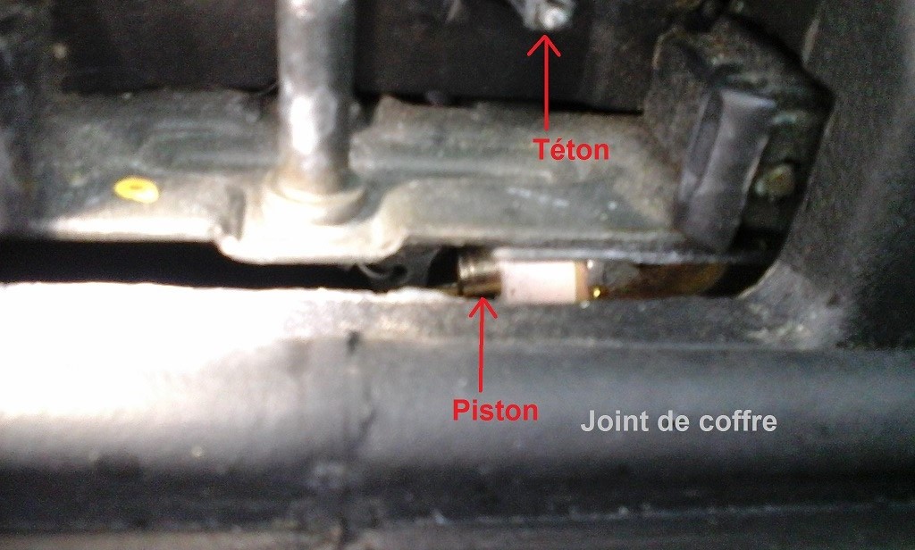 EtienneSoissons Posté(e) le 4 Mars 2017 Signaler Posté(e) le 4 Mars 2017 (modifié) J'ai trouvé ! Alors pour ouvrir le coffre depuis l'intérieur, d'abord : il faut appuyer fort là : Une fois le coffre ouvert, démonter la partie basse du garnissage : 4 vis cruciformes côté intérieur, et deux vis "en étoile" orientées vers l'arrière, non accessibles coffre fermé. A ce stade, on accède à la partie basse du mécanisme, et c'est de là que vient le problème. Ca ressemble à ça, vu de l'intérieur du coffre : Il y a deux mécanismes pour ouvrir le coffre : soit la tirette conducteur, qui actionne le câble, soit la télécommande, qui actionne le piston. Quand on actionne la télécommande, le piston rentre (comme ci-dessous) ce qui actionne le téton qui ouvre le coffre, et le piston ressort immédiatement. Et lorsqu'il y a blocage, c'est que lors de la précédente ouverture du coffre, le piston n'est pas ressorti comme il aurait dû (grippage). A ce moment là, la commande par câble devient inactive (flèche verte ci-dessous) et le piston étant grippé, plus possible d'ouvrir le coffre. Pour ma part, j'ai pulvérisé le piston avec du WD40, et le tour est joué : ça fonctionne à nouveau. Mais comme je suis méfiant, au remontage, je n'ai pas remis en place la garniture plastique de la serrure, ce qui me permettra d'ouvrir le coffre depuis l'intérieur sans démonter le garnissage du coffre si la situation se reproduit à l'avenir. Maintenant, si vous voulez agir préventivement pour éviter que le piston ne se grippe, on peut y accéder sans rien démonter lorsque le coffre est ouvert pour y pulvériser du WD40 : on le voit ci-dessous, dans la fente entre le joint de coffre et le mécanisme de serrure. Voilà, en espérant que ça puisse servir à d'autres ! PS : ça doit quand-même être un classique, vu que ça m'était arrivé sur la diesel il y a 3 ans, et sur la V6 aujourd'hui. A l'époque, Alfa-Romea m'avait remplacé tout le mécanisme.... Modifié le 4 Mars 2017 par EtienneSoissons Ajout de photos