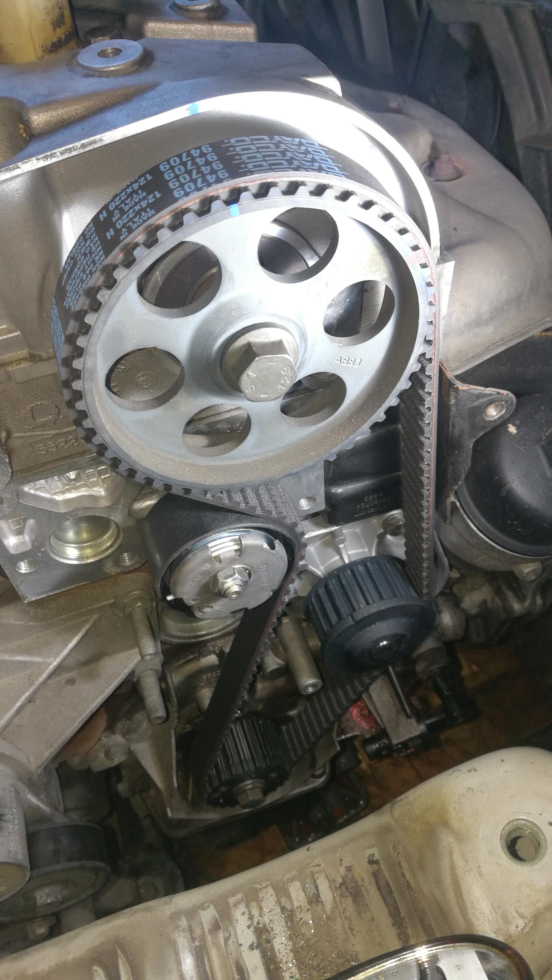 dirty Posté(e) le 8 Octobre 2021 Auteur Signaler Posté(e) le 8 Octobre 2021 (modifié) Aujourd'hui j'ai changer la courroie distribution sur la Mito. C'est pas très compliqué, j'ai bien sûr utilisé les outils de calage appropriés. Place aux photos. Démontage poulie damper. Outils de calages. Par contre j'ai fais une clé pour tendre la courroie, celle livré à cassé. Calage arbre à cames,a la place de la pompe à vide. Calage vilebrequin. Pompe à eau. Courroie après 5 ans et environ 60000km. Et voilà, pour le reste rien de compliqué. Le desserrage de la poulie AAC est nécessaire pour ensuite la serrer après avoir tendu la courroie (poulie folle). Modifié le 8 Octobre 2021 par dirty
