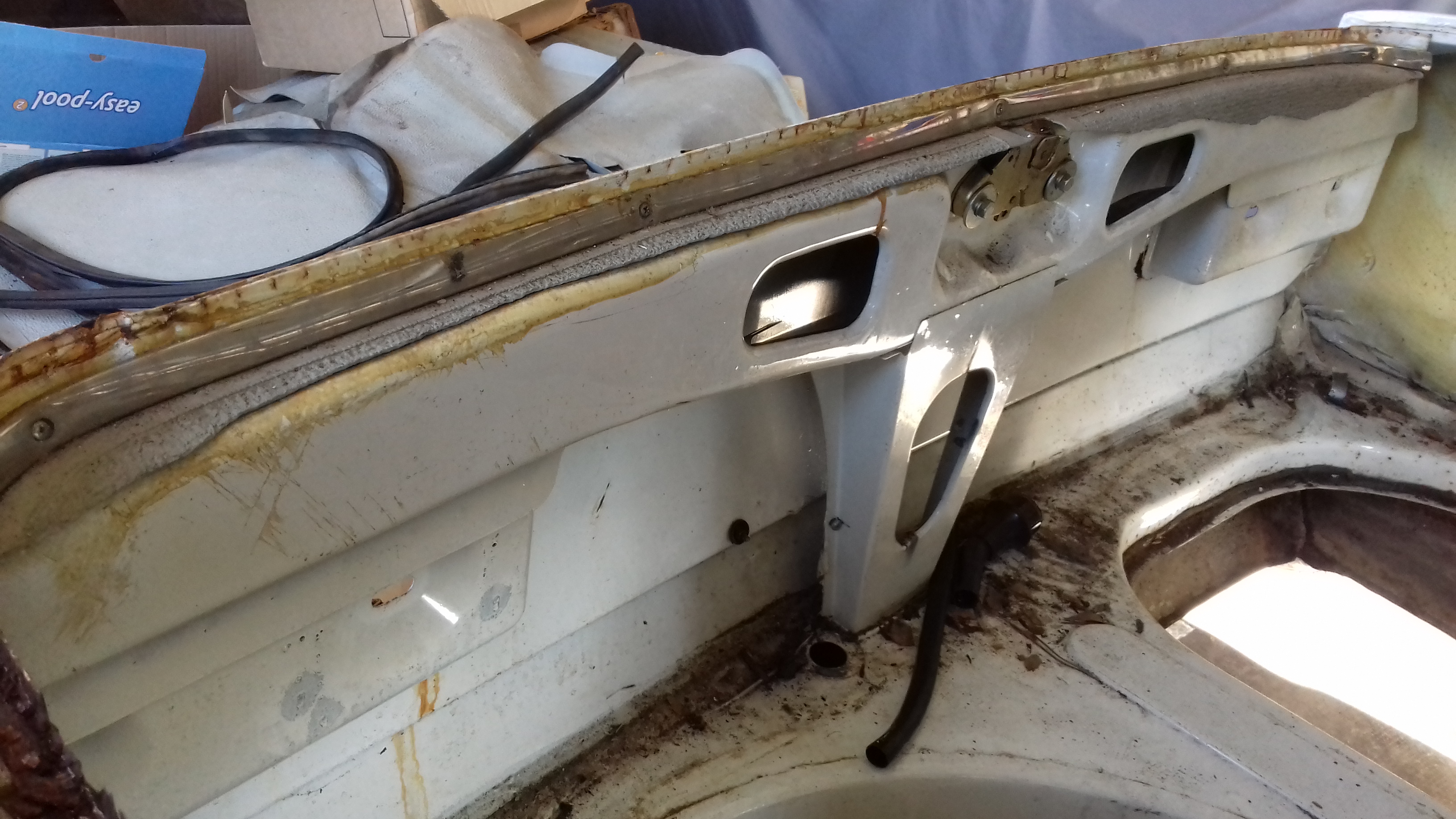Alfajedi Posté(e) le 17 Novembre 2017 Auteur Signaler Posté(e) le 17 Novembre 2017 Pas grand-chose de fait aujourd'hui sur la voiture. Dépose de l'habillage du coffre. Ils ne lésinaient pas sur la colle les italiens!! La partie arrière est malheureusement déchirée. Puis tentative de dépose du pare-choc arrière. Mais ma douille de 17 est trop courte pour attraper le boulon et en plus la partie sous le tampon tourne aussi, sans compter sur l'état du boulon derrière la jupe.