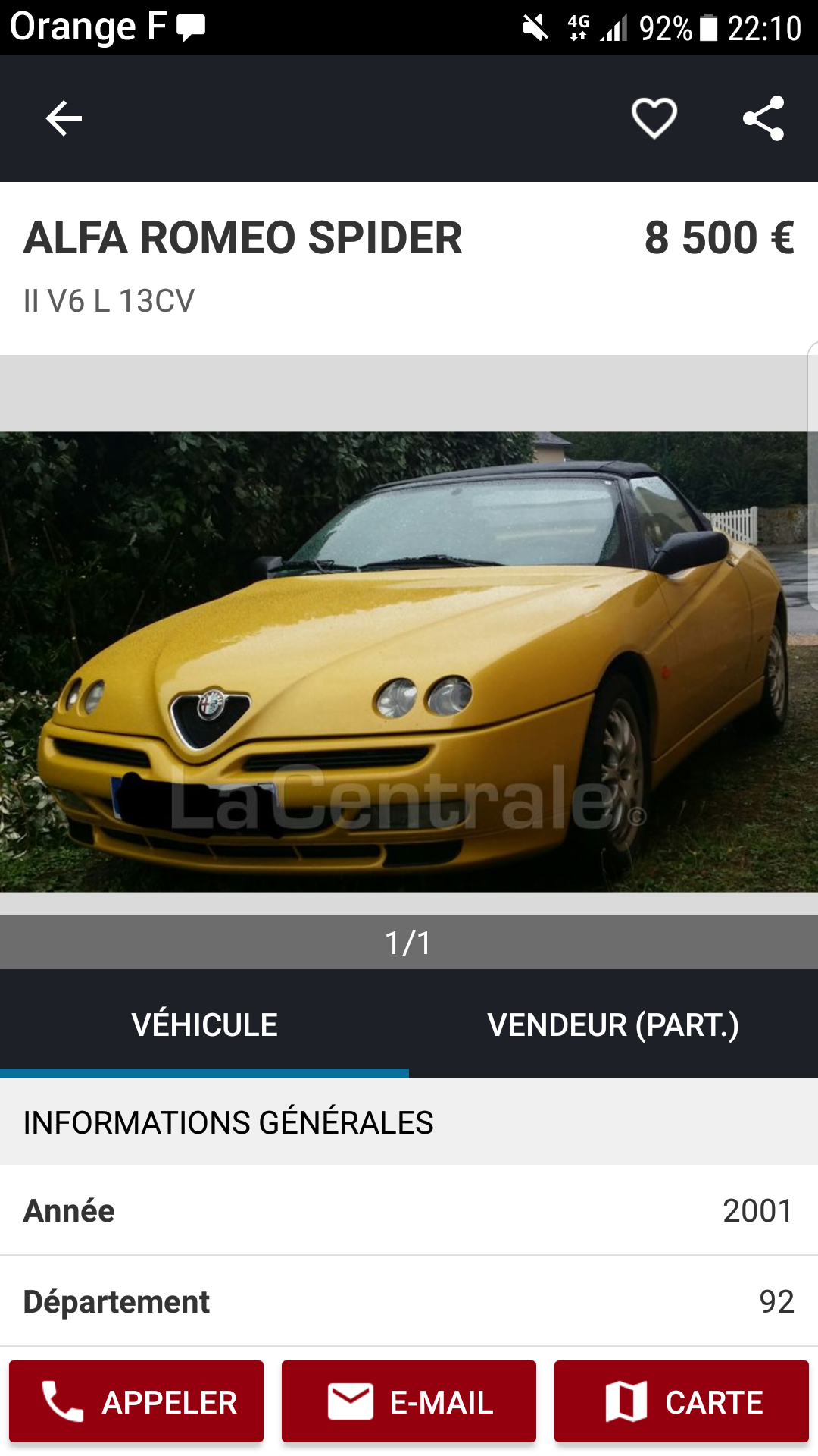 titilem Posté(e) le 7 Février 2017 Auteur Signaler Posté(e) le 7 Février 2017 Bon, ai eu le temps d'appeler cet am le V6 jaune... Mais suis tombé sur le répondeur... Aujourd'hui, il a mis plus de photos sur la Centrale .. c'est bien un Jaune Zoé, et il a l'air très propre intérieur et extérieur ... Faudrait juste changer ces jantes horribles ... enfin pas horribles, car ce sont les jantes Alfa, mais manquant de cachet, de sportivité ... Je piquerais celle à Alfisto au rasso Coincidence, elle est sur Colombes (92), ville où j'ai passé les 30 premières années de ma vie, et où resident encore mes parents ... Mais ne l'ai jamais vu