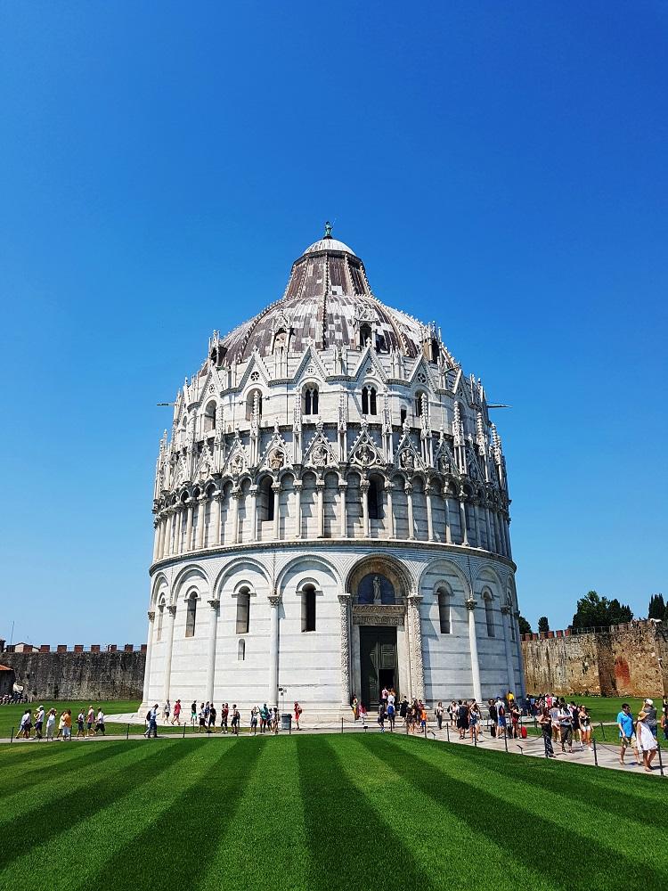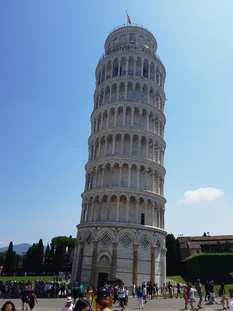 Lodein Posté(e) le 27 Août 2018 Auteur Signaler Posté(e) le 27 Août 2018 ...Suite Le 19 juillet, nous partons pour Pise, qui est notre destination la plus lointaine puisque nous avons un peu moins d'une heure trente de voiture. Après avoir garé facilement la voiture à proximité, malgré notre heure d'arrivée assez tardive, nous découvrons la Piazza dei Miracoli : Je ne sais pas si cela rend vraiment bien en photo mais lorsque l'on arrive sur cette immense place fermée par des murs et bâtiments, on ne peut être qu'ébahie par tant de splendeur. Au premier plan on a le baptistère, derrière la cathédrale, à droite la fameuse tour de Pise et à gauche Campo Santo (Que l'on voit mieux sur la photo précédente) Je me souviens lorsque j'étais venu il y a plus de 20 ans avoir été émerveillé et ce fut encore la cas... La tour de Pise dont la construction a débuté en 1173 et qui penche aujourd'hui de 3°59' après avoir atteint au maximum 5°66' Vue de devant Vue de derrière Comme on peut le voir les 4 derniers étages construit plus tard en 1272, furent posés de travers pour compenser l'inclinaison de la tour... La porte d'entrée Nous ne sommes pas monté sur la tour car il n'y avait plus de billet de disponible pour le 19/07 La cathédrale Sa construction débuta en 1063 pour se terminer en 1118 Le Baptistère Sa construction débuta en 1152 pour se terminer en 1386 A suivre... Lodein