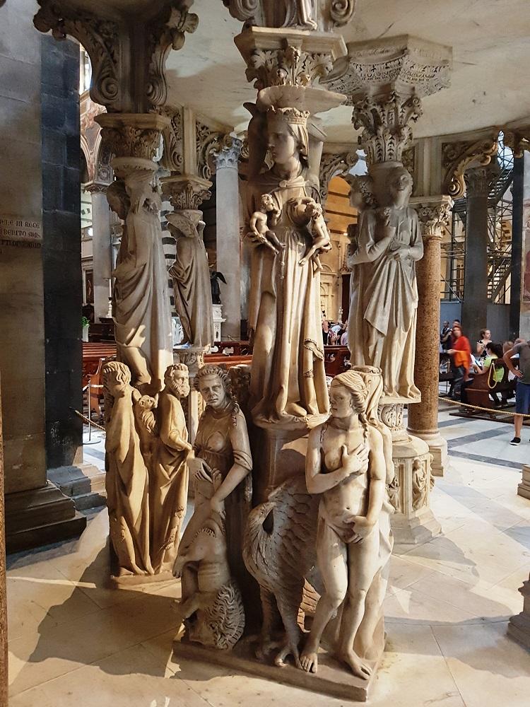 Lodein Posté(e) le 27 Août 2018 Auteur Signaler Posté(e) le 27 Août 2018 ...Suite Visite du Baptistère avec ses fonds baptismaux et sa chaire La chaire est l’œuvre de Nicola Pisano, le père de Giovani Pisano ayant réalisé la chaire de la Cathédrale La décoration est succinct et se résume aux vitraux dont certains aveugles Nous trouvons aussi des tombes comme celle çi Le baptistère comporte une galerie qu'il est possible de visiter et permettant une superbe vue sur le baptistère mais aussi sur la Cathédrale A suivre... Lodein