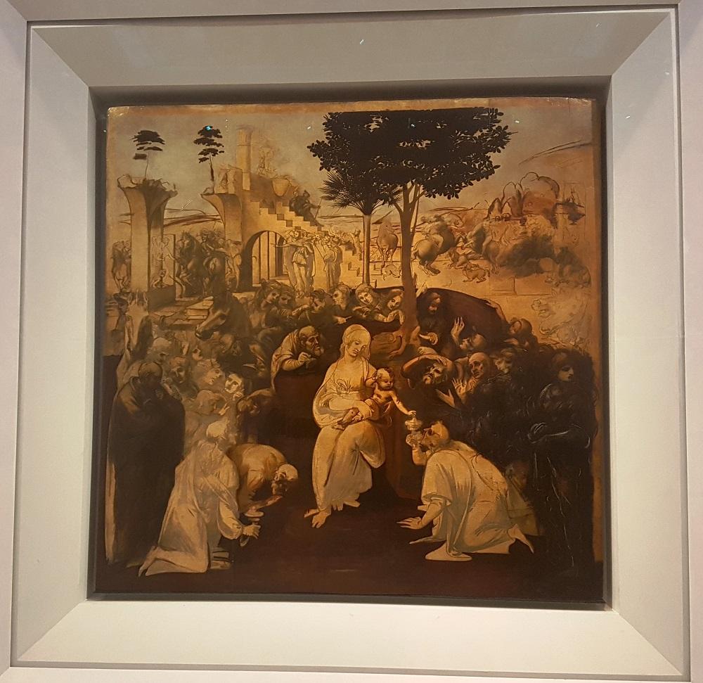 Lodein Posté(e) le 24 Septembre 2018 Auteur Signaler Posté(e) le 24 Septembre 2018 ...Suite On continue la visite de la galerie des offices avec la Tribune où est / était (J'avoue ne pas avoir bien compris) les plus belles œuvres mais qui n'est pas accessible : Dans tous les cas la coupole avec ses coquilles en nacre est superbe Ainsi que son sol Au bout de la galerie, nous avons une belle vue sur le Ponte Vecchio mais aussi sur la cathédrale et bien sur sur la galerie des offices On reprend la découverte des œuvres avec : Lamentation sur le corps du Christ (1500 - 1506) de Giovanni Bellini Art Romain 200-230 APJC Art Romain 2ème siècle APJC L'Annonciation (1472-1475) Léonard de Vinci l'Adoration des Mages (1481-1482) Léonard de Vinci Le Baptême du Christ (1475) de Léonard de Vinci et Andréa del Verrocchio "Tondo Doni" (1505-1507) Michelangelo Buonarrroti La Madone et l'enfant avec St Jean Baptiste jeune (1505-1506) Raffaello Sanzio La salle Niobé avec au centre la statue de Niobé, les statues de ses enfants et au fond un Rubens Ses enfants et un autre Rubens Le superbe plafond La Venus d'Urbino (1538) Tiziano Vecellio Bacchus (1597-1598) Caravaggio Judith et Holofermes (1626-1634) Rubens Un Rabbin (1665) Rembrandt A suivre... Lodein