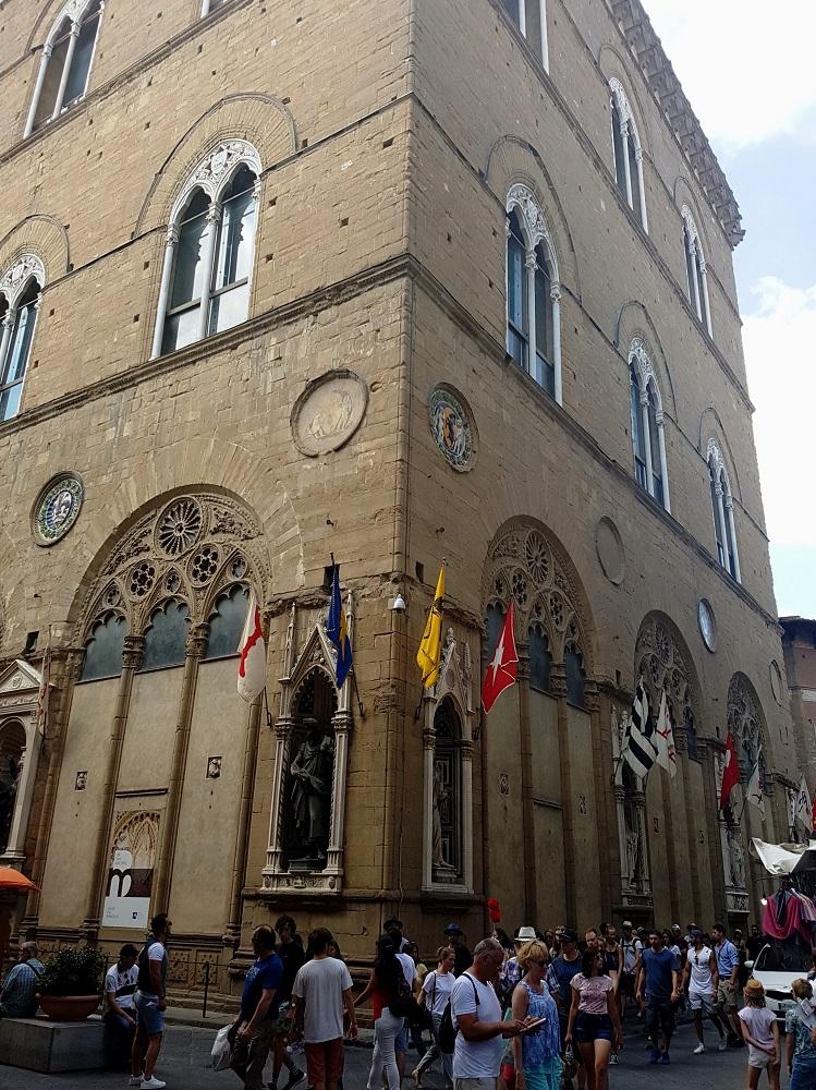 Lodein Posté(e) le 10 Septembre 2018 Auteur Signaler Posté(e) le 10 Septembre 2018 (modifié) ...Suite Le 20 juillet nous partons pour Florence, et là pour se garer, c'est un peu compliqué car la plupart des parkings sont dans des ZTL (Zone à trafic limité), heureusement nous trouvons une place gratuite qui plus est, à la limite des ZTL. Bon elle fait 5m30, ce qui avec la XJ8 me laisse 10 cm devant et 10 cm derrière, mais bon avec de l'aide et quelques manœuvre, on y est arrivé... Nous sommes garé le long de l'Arno avec une belle vue sur le Sud de Florence (On aperçoit tout en haut la Piazzale Michelangelo) On passe devant la bibliothèque centrale de Florence On traverse le pont alle Grazie pour avoir une superbe vue sur le ponte Vecchio, qui est un pont bati En continuant vers le pont nous passons devant la galerie des offices Nous voila sur ce ponte vecchio, qui est une galerie marchande mais pas n'importe quelle galerie marchande puisque l'on retrouve sur ce pont les plus grands joailliers et orfèvres de luxe de la ville et même de l'Italie On a aussi une superbe vue vers l'ouest (Avec le pont alle grazie au fond et la galerie des offices à gauche) et vers le l'ouest (avec le pont Santa Trinita) Nous continuons pour arriver au Palazzo Vecchio qui est l'hotel de ville de Florence Avec à sa droite la Loggia dei Lanzi qui présente en accès libre jour et nuit de superbes sculptures comme l’enlèvement des Sabines (1579-1583) de Giambologna ou Persée tenant la tête de Méduse (1545-1554) de Cellini On retrouve aussi sur la place une statue de Cosme 1er de Médicis Il y a aussi sur la place la fontaine de Neptune mais qui n'était malheureusement pas visible puisqu'en travaux A suivre... Lodein Modifié le 10 Septembre 2018 par Lodein