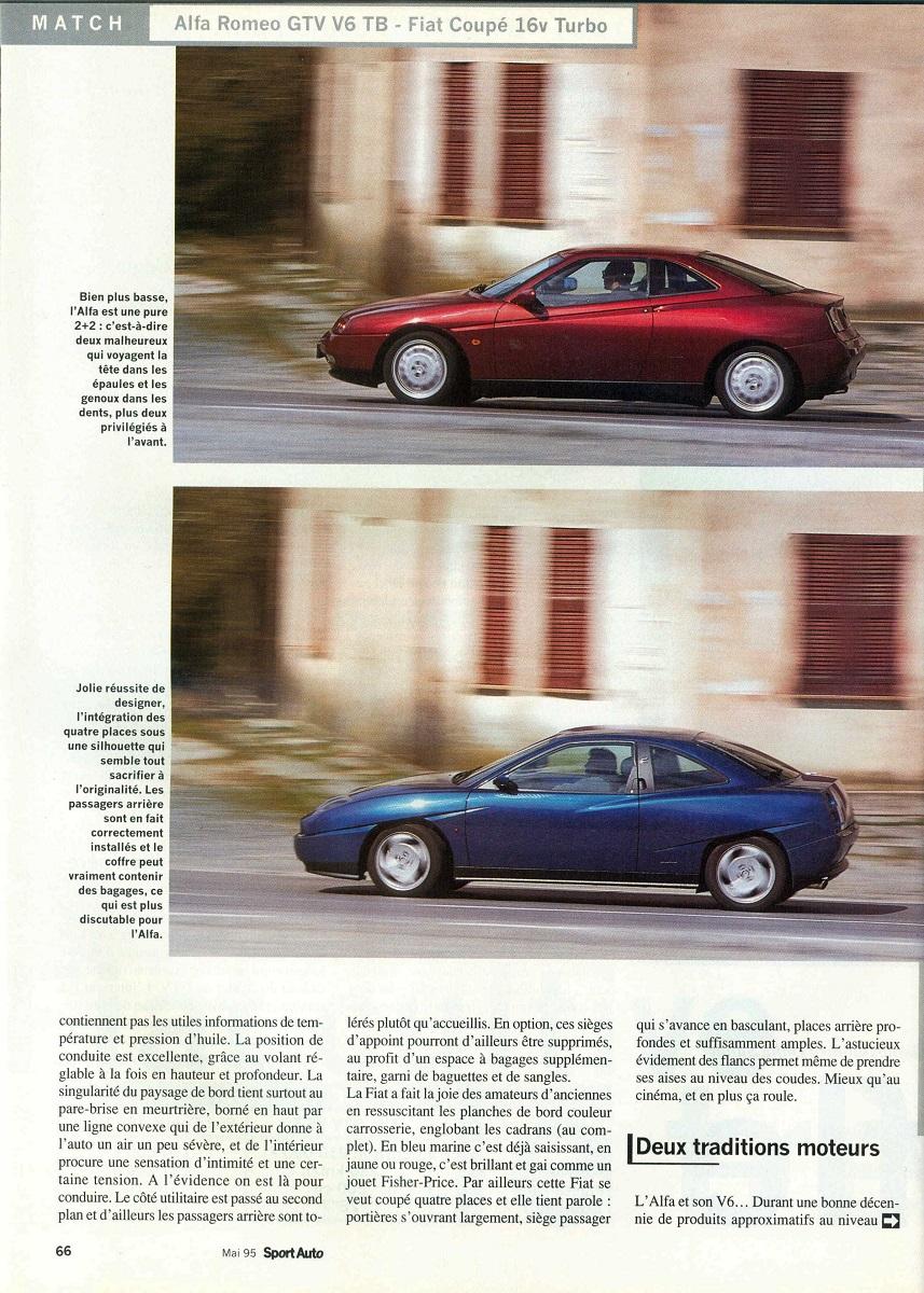 Lodein Posté(e) le 14 Janvier 2019 Signaler Posté(e) le 14 Janvier 2019 Dans le N° 400 d'avril 95 de Sport Auto, il y avait aussi ce match entre l'Alfa Romeo GTV V6 TB et sa cousine la Fiat Coupé 16V Turbo spécialement pour @céline !!! Bonne lecture (Vous pouvez cliquer sur les photos pour les agrandir et ainsi faciliter la lecture) Lodein