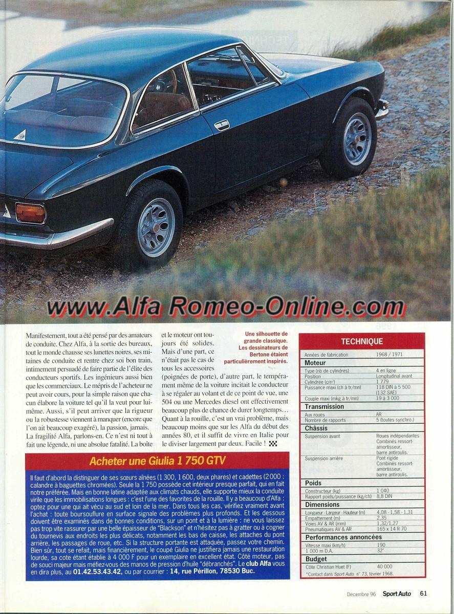 Lodein Posté(e) le 18 Février 2019 Signaler Posté(e) le 18 Février 2019 Dans ce numéro 419 de Sport Auto de décembre 1996 vous trouverez un essai de l'Alfa Romeo Giulia 1750 GTV (Spécial dédicace à @Commandatore) Bonne lecture Lodein