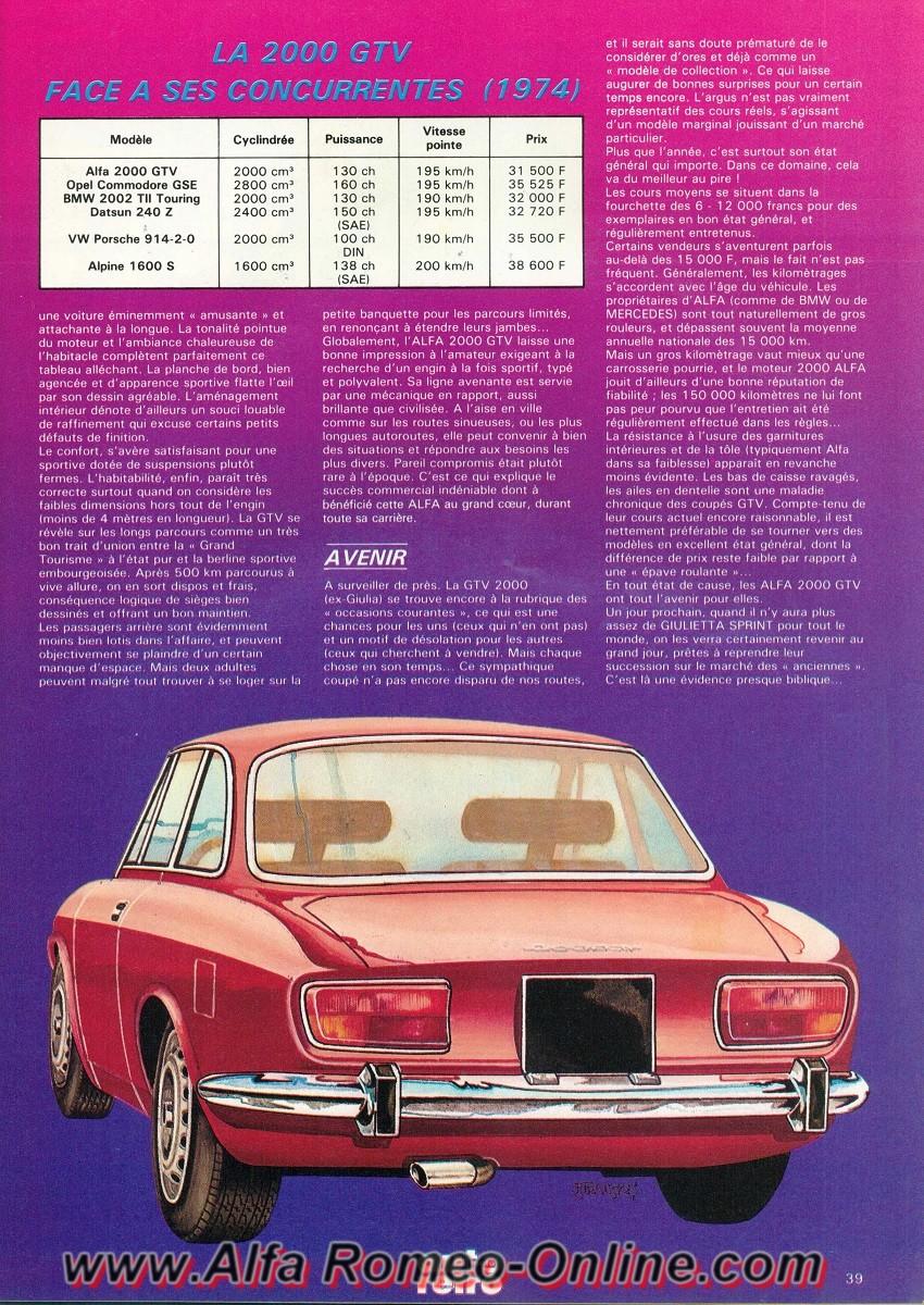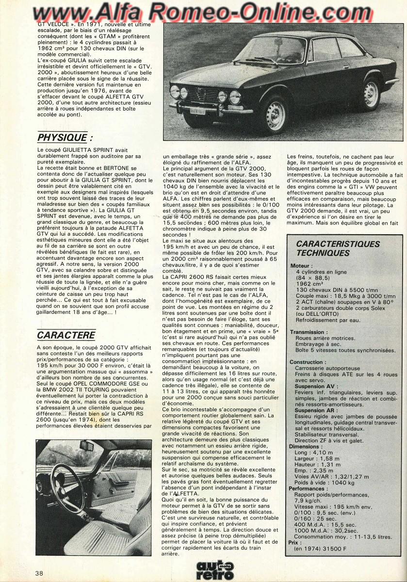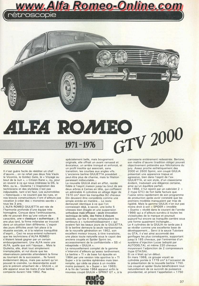 Lodein Posté(e) le 10 Mars 2019 Signaler Posté(e) le 10 Mars 2019 Après vous avoir proposé des articles sur des essais d'Alfa Romeo parus dans Sport Auto, nous passons maintenant aux articles parus dans Auto Retro Dans ce numéro 26 d'octobre 1982 nous retrouvons une rétroscopie sur l'Alfa Romeo GTV 2000 Bonne lecture (Comme d'habitude vous pouvez cliquez sur les photos pour les agrandir et ainsi faciliter la lecture) Lodein