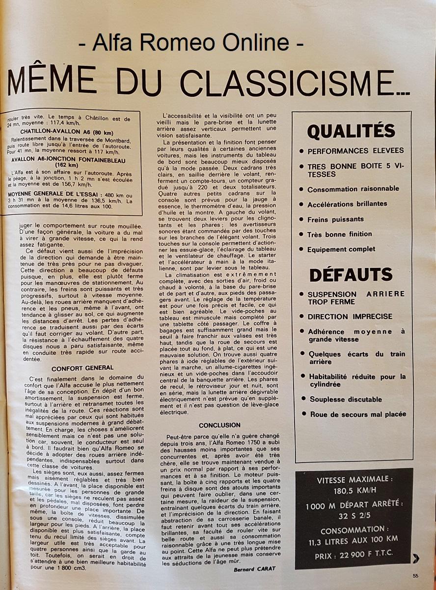 Lodein Posté(e) le 14 Juin 2020 Signaler Posté(e) le 14 Juin 2020 Ca y est j'ai commencé à ranger mes revues AUTO JOURNAL, je vous fait donc profiter des articles sur les Alfa Romeo... Oon commence par le numéro du 3 juin 1971 et l'essai de l'Alfa Romeo 1750 Bonne lecture... Vous pouvez cliquez sur les images (2 ou 3 fois suivant votre système) pour les agrandir et ainsi faciliter la lecture Lodein
