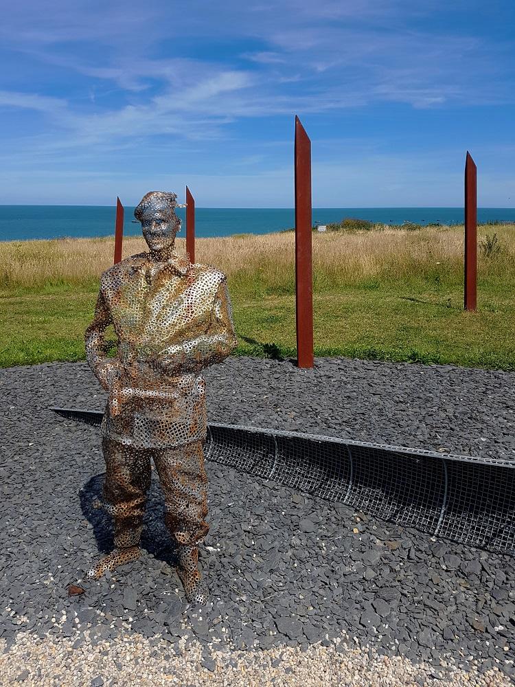 Lodein Posté(e) le 28 Juillet 2020 Auteur Signaler Posté(e) le 28 Juillet 2020 ...Suite Comme dans beaucoup de ville normande de bord de mer, il y a des vestiges de la guerre Une batterie anti-aérienne et un morceau de ponton Whale ou pont d'Arromanches le pont d'Arromanches de plus prés avec un bulldozer Un char Sherman M4 "Berry au bac" qui surplombe Arromanches En continuant à monter nous trouvons une statue de la vierge érigée en 1911, pour le centenaire d’une bataille navale contre les Anglais !!! avec derrière des ponts Arromanches Juste à coté nous trouvons des sculptures à la gloire des Anglais qui ont débarqués ici Nous avons bien sur une superbe vue sur Arromanches En redescendant nous passons à coté de ce Jésus Christ en croix de 1901 qui est juste à coté du cinéma 360° d'Arromanches A suivre... Lodein