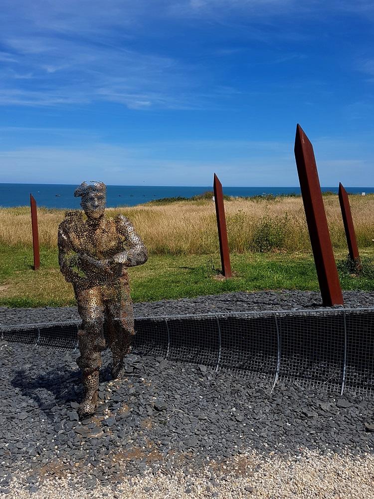 Lodein Posté(e) le 8 Août 2020 Auteur Signaler Posté(e) le 8 Août 2020 ...Suite Nous sommes ensuite parti au cimetière militaire américain de Colleville sur mer Il est situé juste au-dessus de la plage d'Omaha Beach Ce cimetière inauguré en 1956 fait 70 ha et renferme 9386 sépultures La chapelle du cimetière où est écrit : " Cette chapelle a été élevée par les États-Unis d’Amérique en souvenir reconnaissant de leurs fils qui tombèrent au cours des débarquements sur les plages de Normandie et pendant la libération de la France septentrionale. Leurs tombes sont le symbole éternel de leur héroïsme et de leur sacrifice à la cause commune de l’humanité." Le mémorial La statue centrale de Donald De Lue symbolisant "L'esprit de la jeunesse américaine s'élevant des flots". Elle mesure 7 mètres Nous y trouvons aussi la carte du débarquement en Normandie et des opérations qui suivirent (Attention le Nord est vers le Bas) et la carte des opérations alliées en Europe du 6 juin 1944 au 8 mai 1945 Derrière se trouve le "Jardin des Disparus" où sont inscrits les noms des 1 557 disparus dont les restes n'ont pu être identifiés ou simplement retrouvés A suivre... Lodein