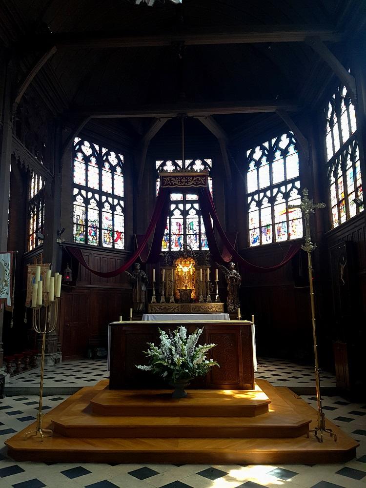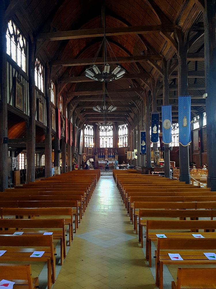 Lodein Posté(e) le 23 Août 2020 Auteur Signaler Posté(e) le 23 Août 2020 ...Suite On continue notre balade dans les petites rues Pour arriver au clocher de l'église Sainte Catherine qui est à coté de l'église Le clocher a été érigé à bonne distance de la nef, pour éviter de propager les flammes en cas d'incendie, en effet, le clocher attire la foudre en raison de son élévation et de sa position à flanc de colline. L'église Sainte Catherine a comme autre particularité d'être l'une des rares églises en France construite essentiellement en bois. L'église date de la seconde moitié du XVème siècle Une autre particularité est d'avoir 2 nefs. Allez entrons, La première nef et son autel la seconde nef et son autel avec plusieurs bateaux-votif Les deux autels Notez le toit ayant l'aspect d'une coque de bateau renversée L'orgue Notre Dame de Grace A suivre... Lodein