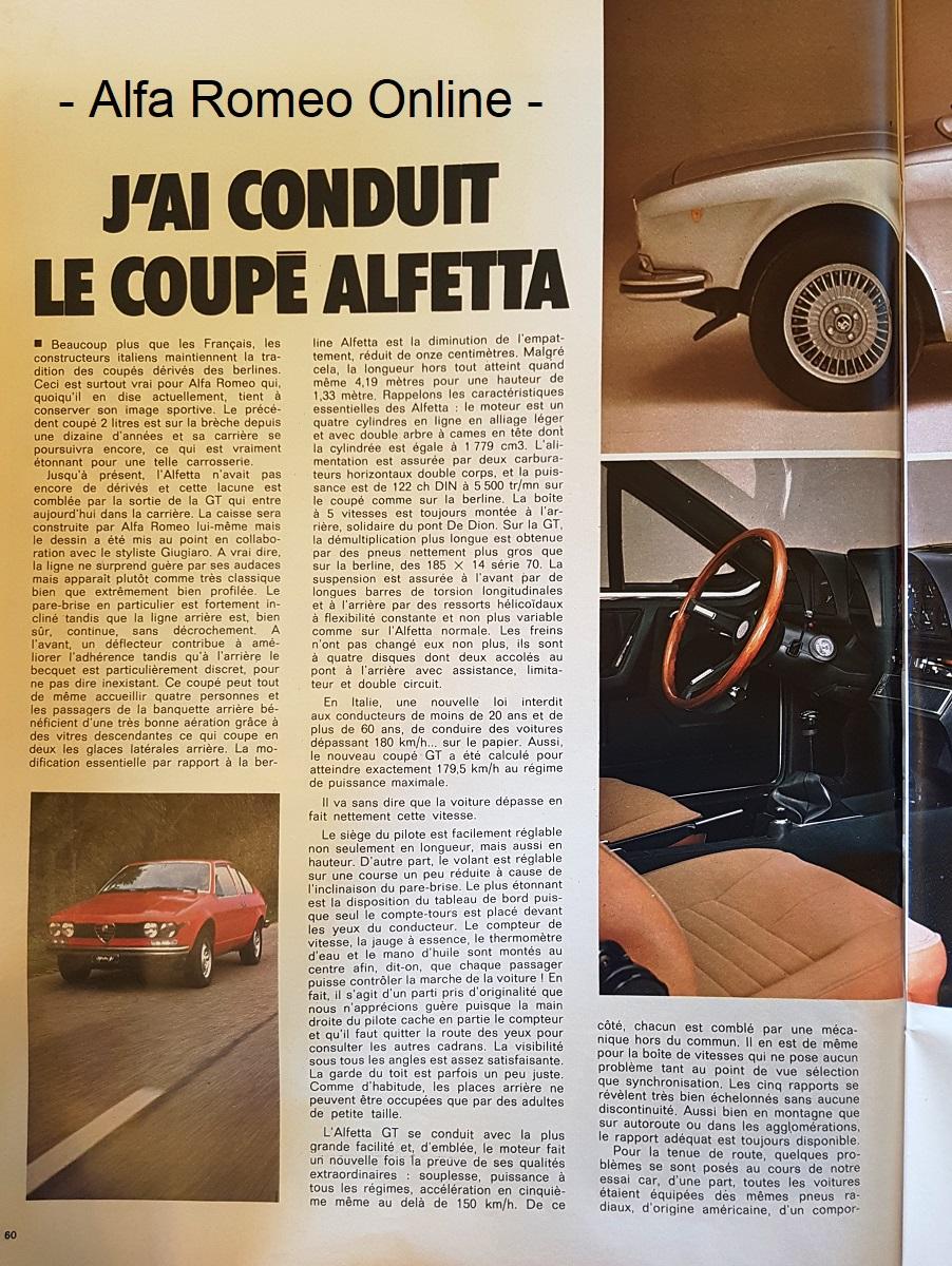 Lodein Posté(e) le 23 Juillet 2020 Signaler Posté(e) le 23 Juillet 2020 Vous trouverez dans cet Auto Journal du 1er juin 1974 une prise en main de L'Alfa Romeo Alfetta Coupé Bonne lecture... Lodein
