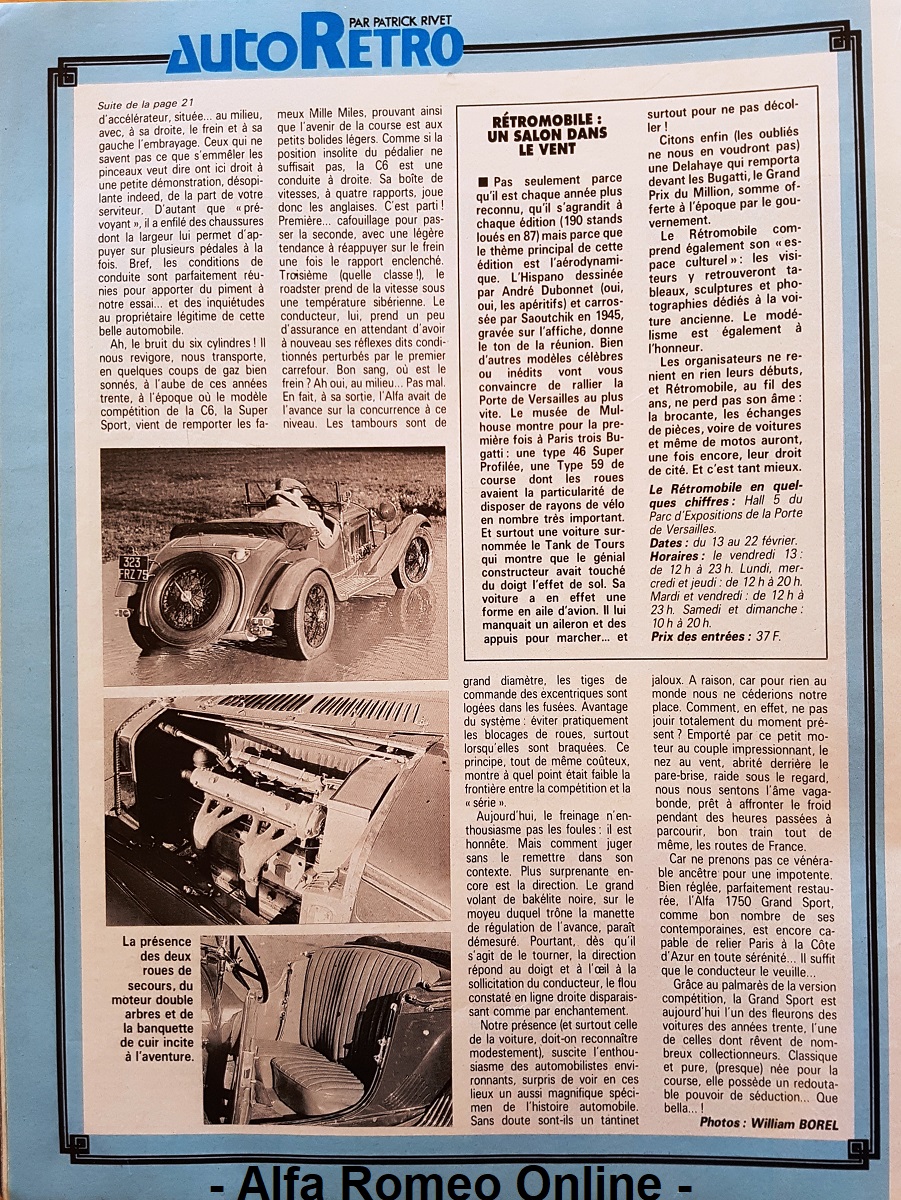 Lodein Posté(e) le 25 Avril 2021 Signaler Posté(e) le 25 Avril 2021 Vous trouverez dans le numéro du 1er février 1987 de l'Auto Journal un essai rétro de l'Alfa Romeo 6C 1750 Grand Sport Bonne lecture Lodein
