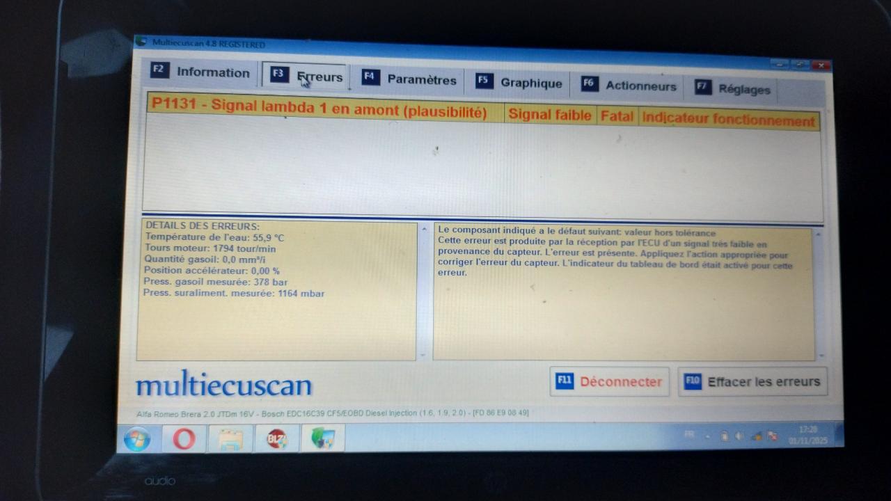 CLEMBAB Posté(e) le 7 Juillet 2022 Signaler Posté(e) le 7 Juillet 2022 Bonjour, je viens vers vous car je suis embêter avec mon alfa 159 2,0 170 cv de 2009. Elle a 270000 kms et depuis quelques temps j'ai des à-coups moteurs surtout en 2 eme et toujours vers 1600-2200 tours, quelquefois en 3 eme. Jamais d'a-coups en 1ere,4-5-6eme. Et derrière la voiture, nuage noir. Quelquefois , voyant moteur et défaut P1131: Signal lambda 1 en amont (plausabilité). J'ai vérifié les durites turbo mais toujours pleine puissance, j'ai changé la sonde lambda, la vanne egr: Toujours pareil. Je sèche : Géométrie variable, injecteur, débitmètre, boitier papillon,... Autant de solutions J'ai vraiment besoin de vos lumières car je n'ai pas envi de m'en séparer. Merci a tous.